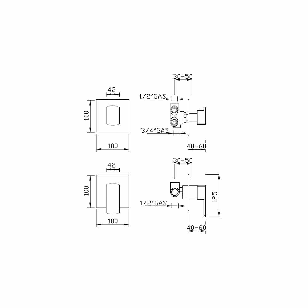 Miscelatore per doccia ad incasso con deviatore a 5 uscite completo di parte ad incasso e parti esterne.