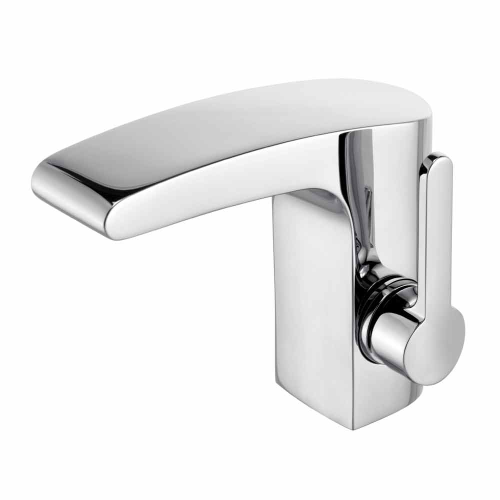 Miscelatore monocomando moderno per lavabo da bagno di realizzato in ottone finitura cromata.