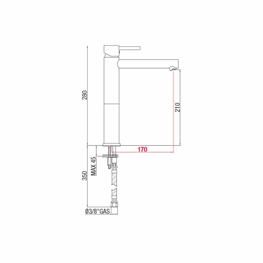 - H 280 mm, interasse 170 mm.