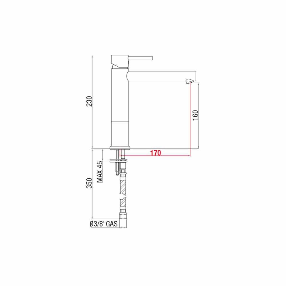- H 230 mm, interasse 170 mm;