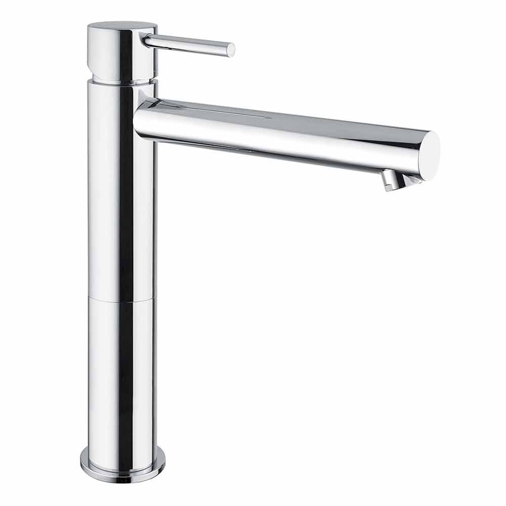 Miscelatore prolungato per lavabo bagno moderno in ottone cromo Made in Italy.