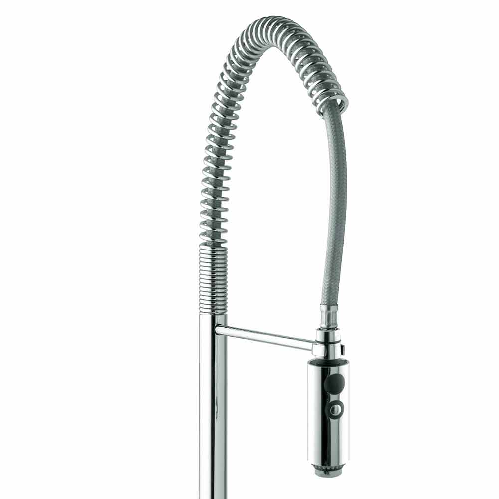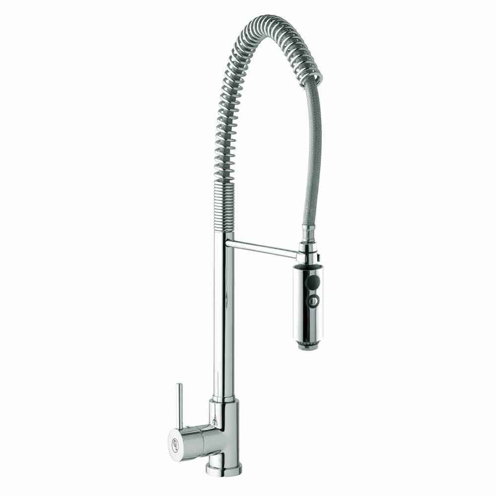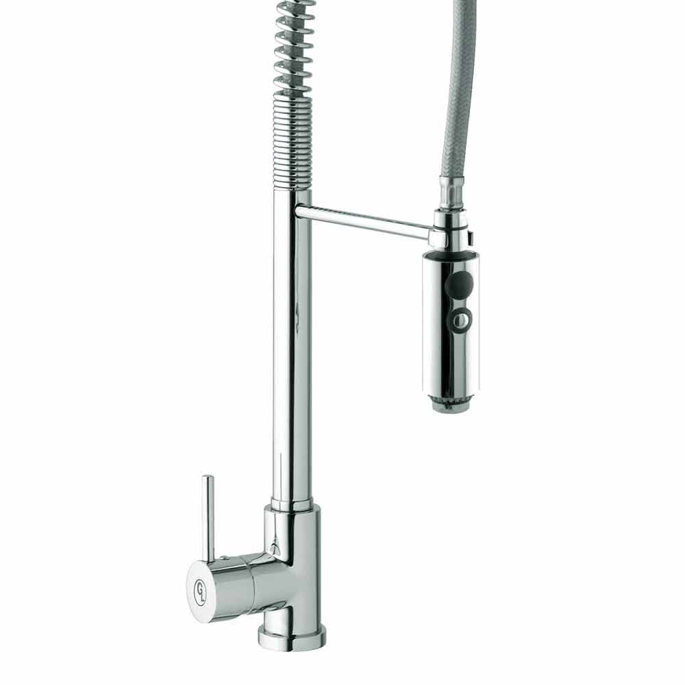 Miscelatore per lavabo da cucina Made in Italy realizzato in ottone cromato. Funzionalità e design si fondono in questo meraviglioso articolo dal gusto moderno pensato per un utilizzo semplice e pratico grazie alla presenza della canna orientabile con molla e della doccia a 2 getti. Ciò che lo rende unico è la presenza di una cartuccia definita ES in grado di fornire acqua fredda quando la leva viene alzata in posizione centrale evitando di richiedere acqua calda alla caldaia e consentendo così un consistente risparmio di energia.