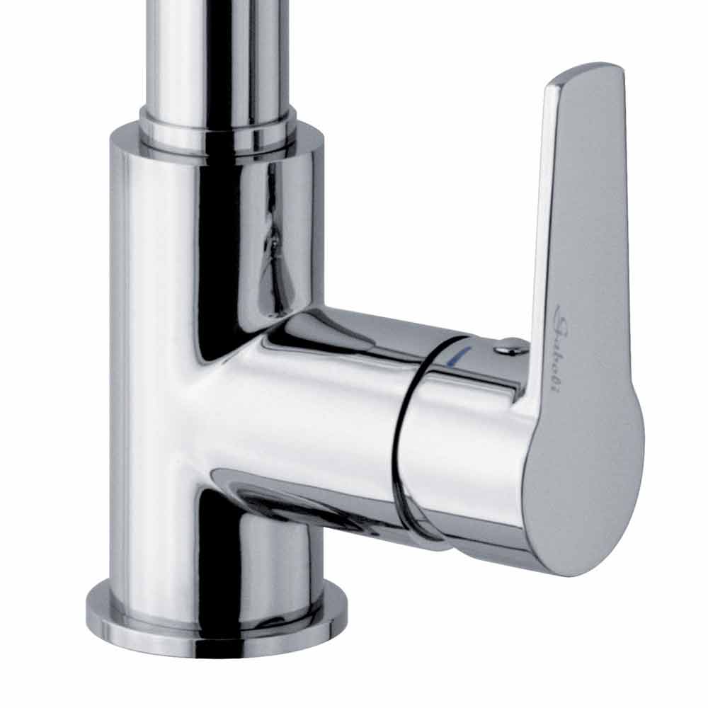 Miscelatore moderno per lavabo con canna orientabile in ottone cromato Made in Italy.