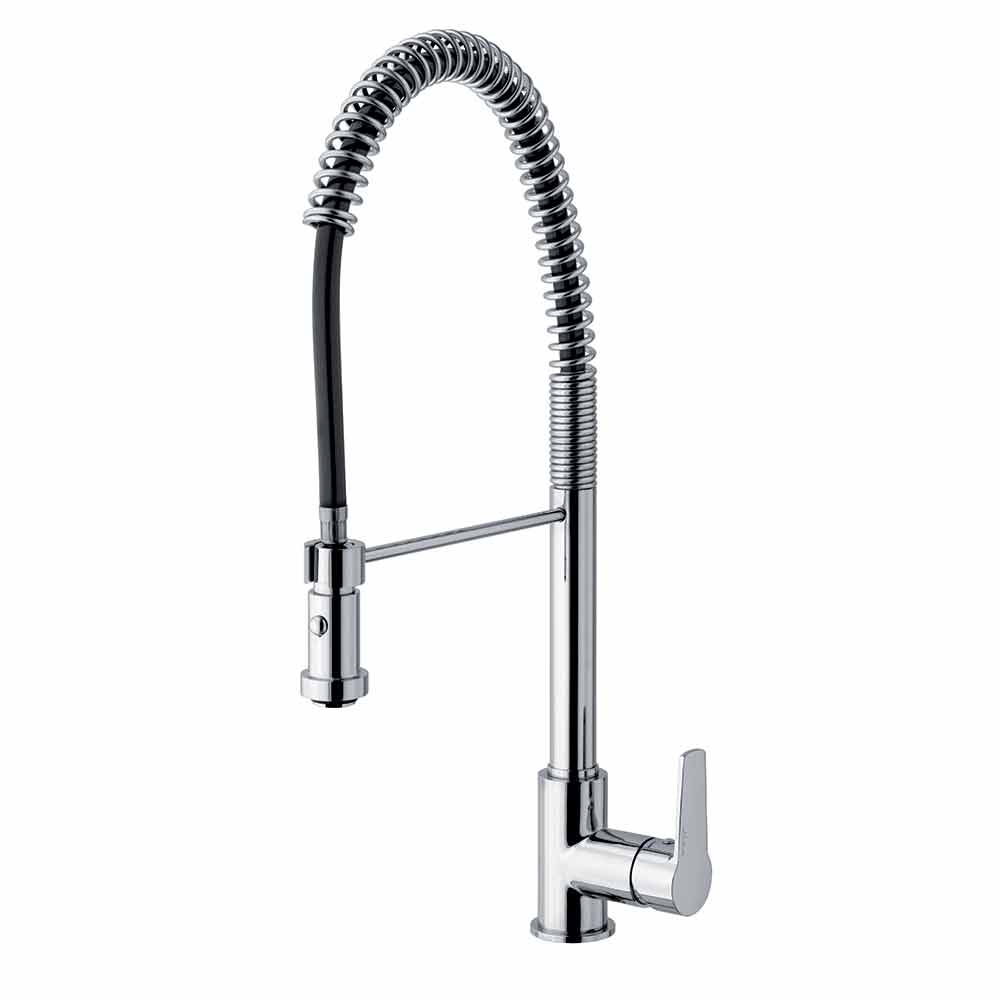 Miscelatore per lavabo da cucina Made in Italy realizzato in ottone cromato. Grazie alla presenza della canna orientabile con molla e della doccia a 2 getti, funzionalità e design si fondono per dare vita al perfetto prodotto per una cucina dal look moderno e innovativo senza tralasciare un utilizzo estremamente semplice e pratico. Ciò che ne accresce ancor di più il valore è la presenza di una cartuccia definita ES in grado di fornire acqua fredda quando la leva viene alzata in posizione centrale evitando di richiedere acqua calda alla caldaia e consentendo così un consistente risparmio di energia.