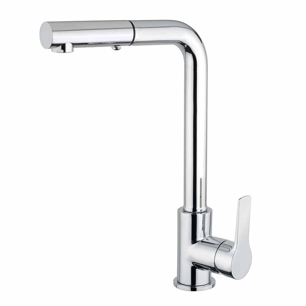 ottone cromato. Grazie alla presenza della canna orientabile e della doccetta a 2 getti estraibile,