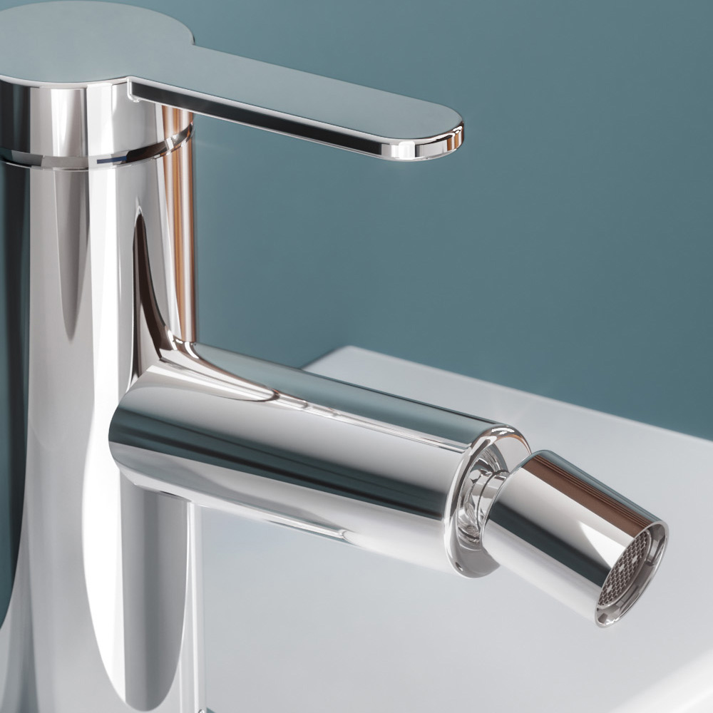 miscelatore monocomando per il bidet presenta un design dalla perfetta sincronia tra la maniglia e la bocca di erogazione.