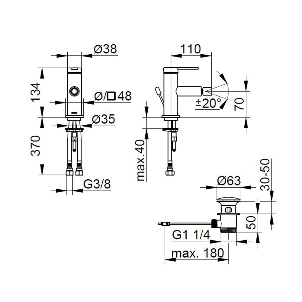 - tubi di pressione 435 mm, G 3/8 Pollici;