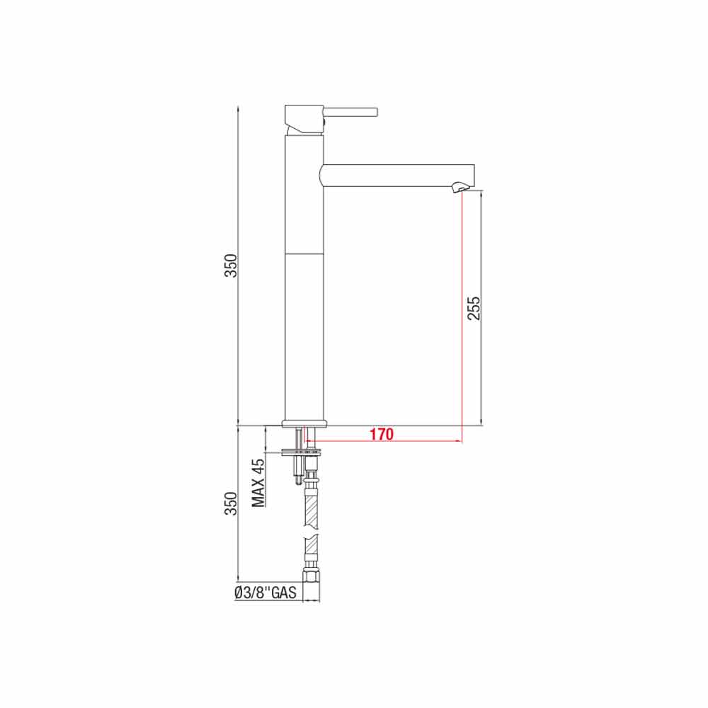 Miscelatore prolungato senza scarico per lavabo bagno in ottone Made in Italy.