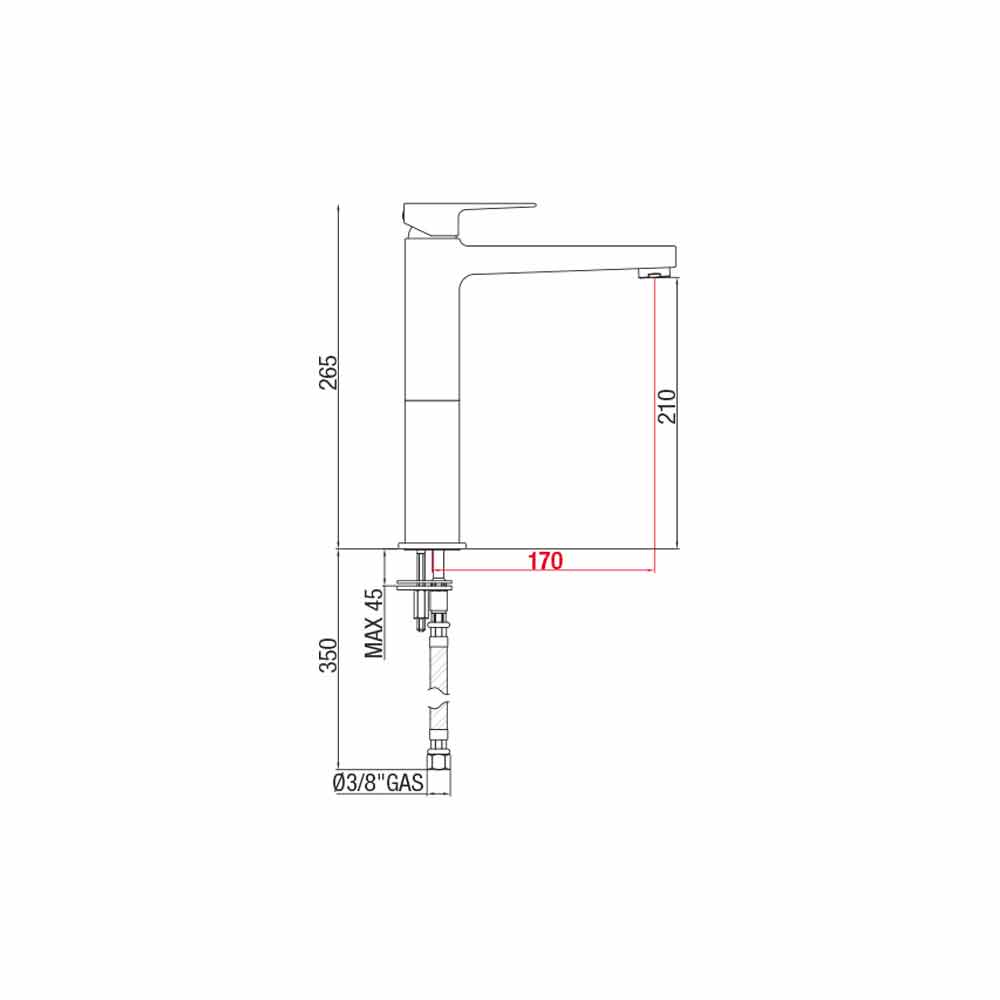 Miscelatore lavabo bagno prolungato in ottone design moderno Made in Italy.