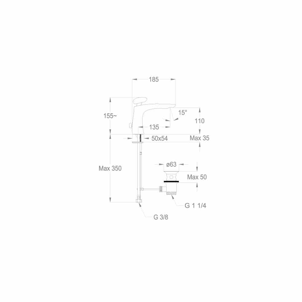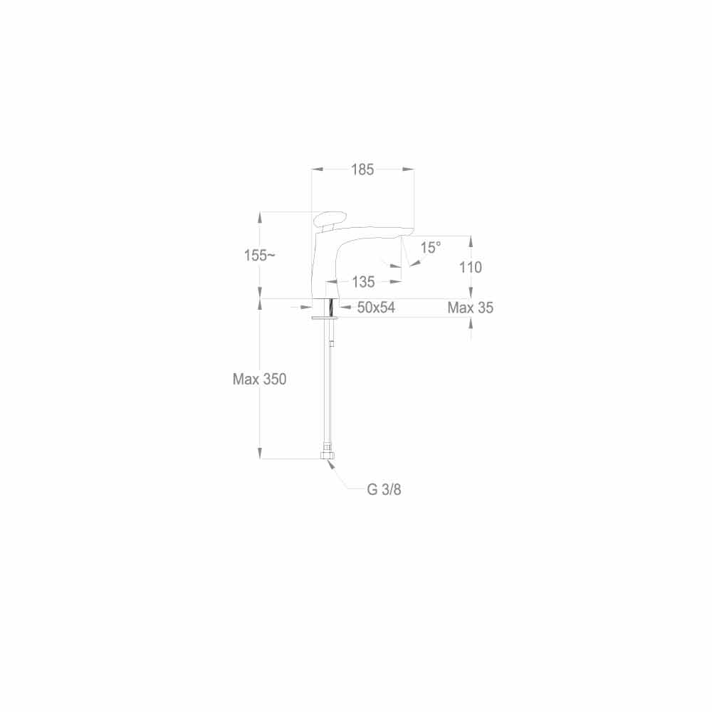 Miscelatore lavabo da appoggio di design ultra moderno e creativo alto 155mm e con un interasse di 135mm.