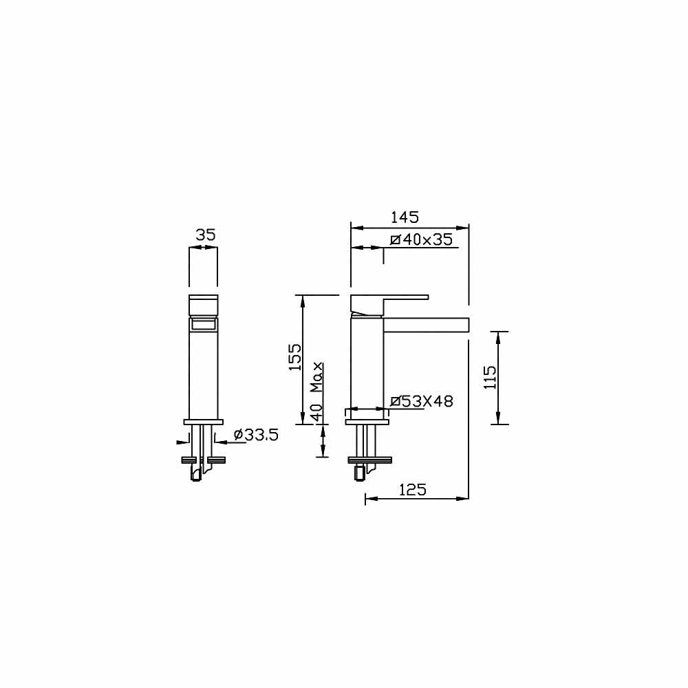Miscelatore per lavabo completo senza scarico con flessibili con calotta da 3/8 femmina e kit di fissaggio.