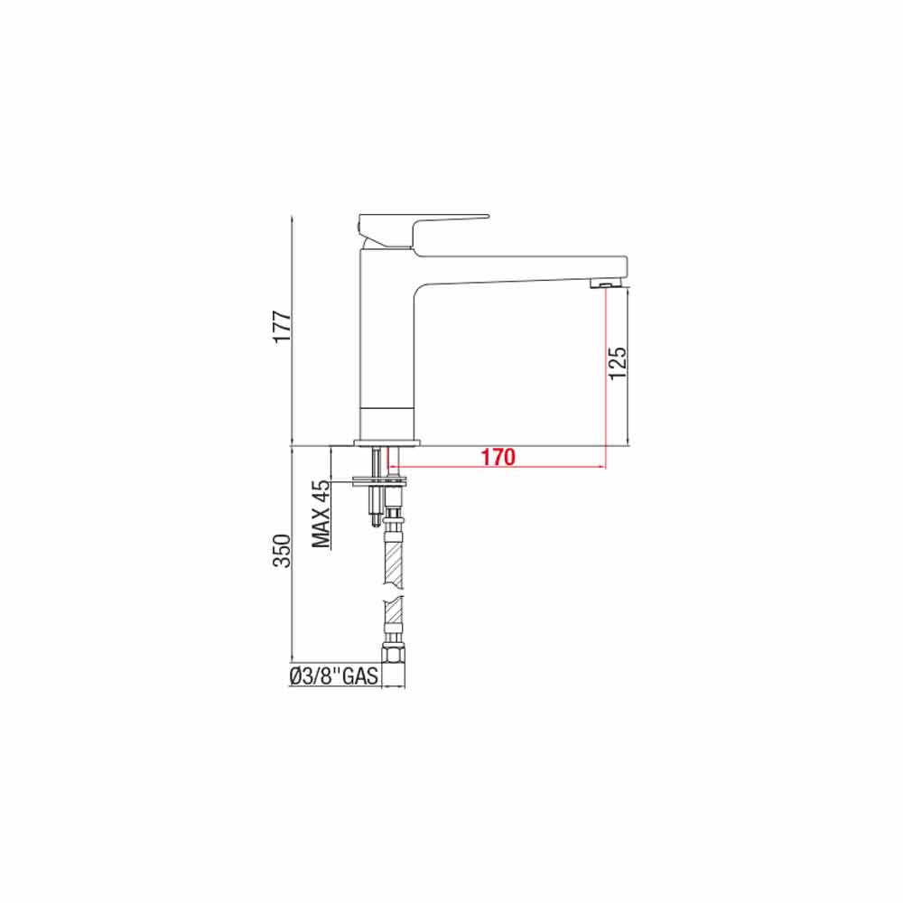 Miscelatore prolungato in ottone per lavabo bagno senza scarico Made in Italy.