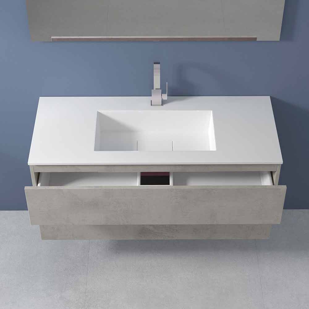 Si tratta di un mobile d'arredo bagno a sospensione con lavabo integrato di forma rettangolare in grado di garantire non solo praticità e funzionalità ma anche un'atmosfera sofistica e moderna, per un design senza tempo.