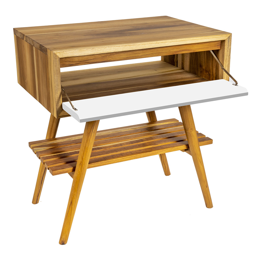 Mobile bagno da terra in teak con cassetto bianco a ribaltina.