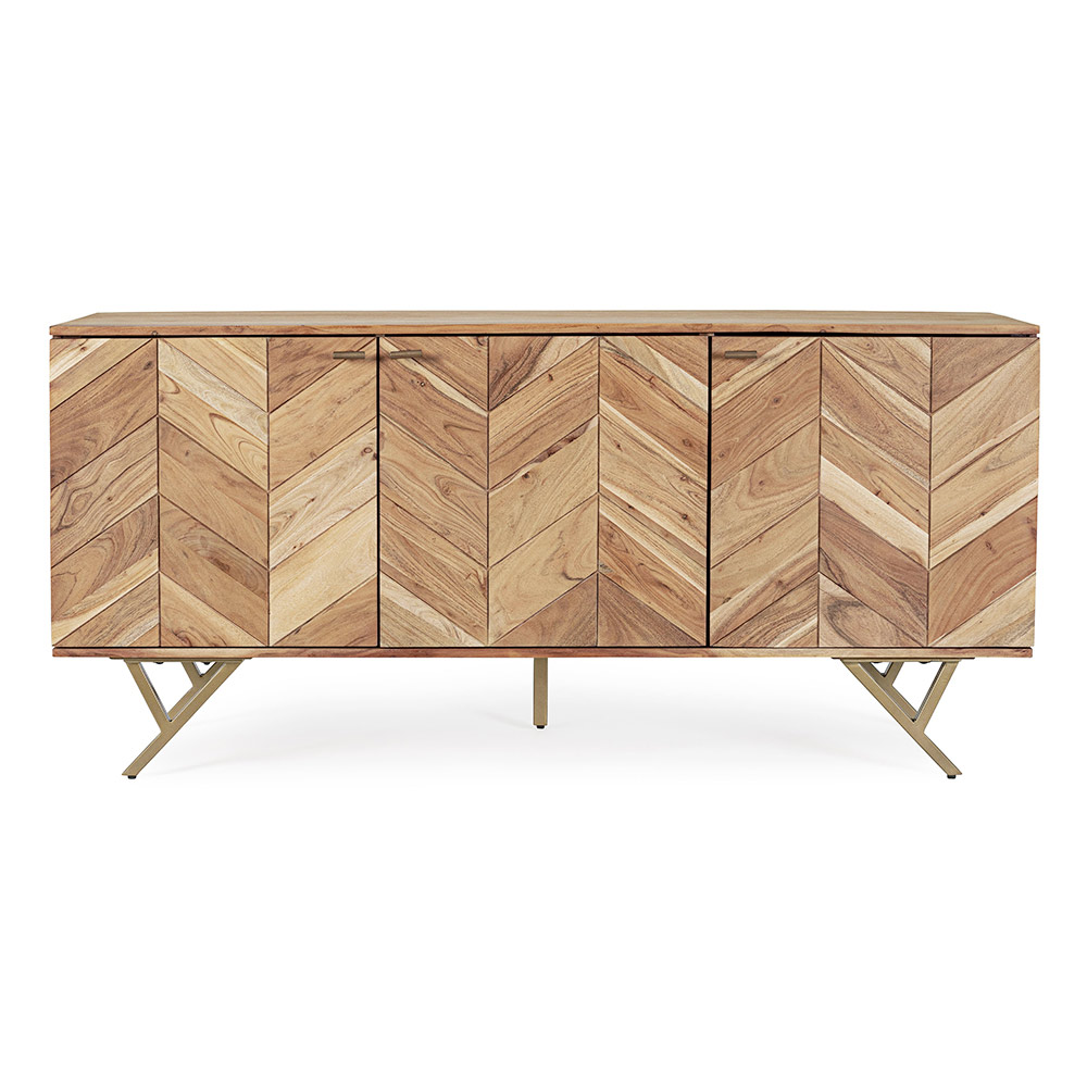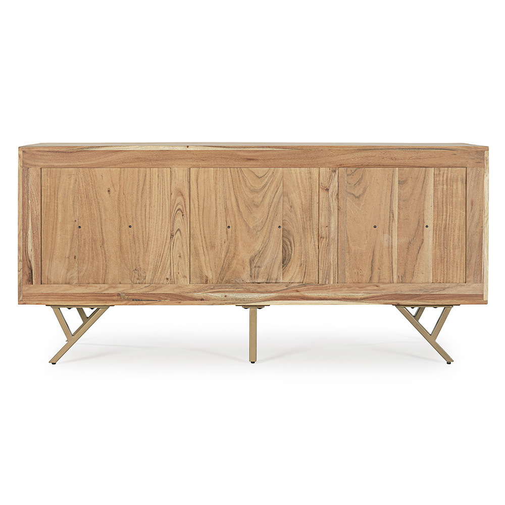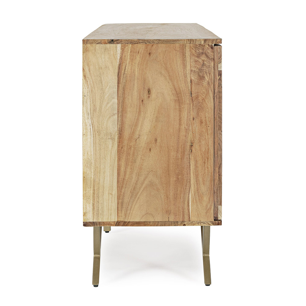 Madia in legno di acacia a 3 ante e gambe in acciaio di design etnico.