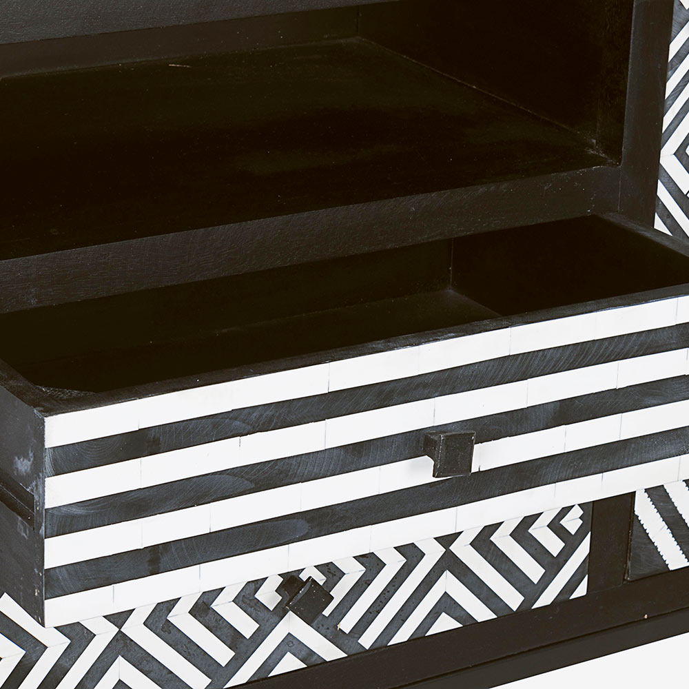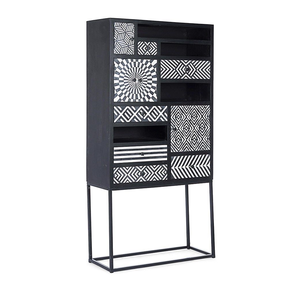 Mobile madia in legno di mango con 4 ante e 6 cassetti a mosaico stile etnico.