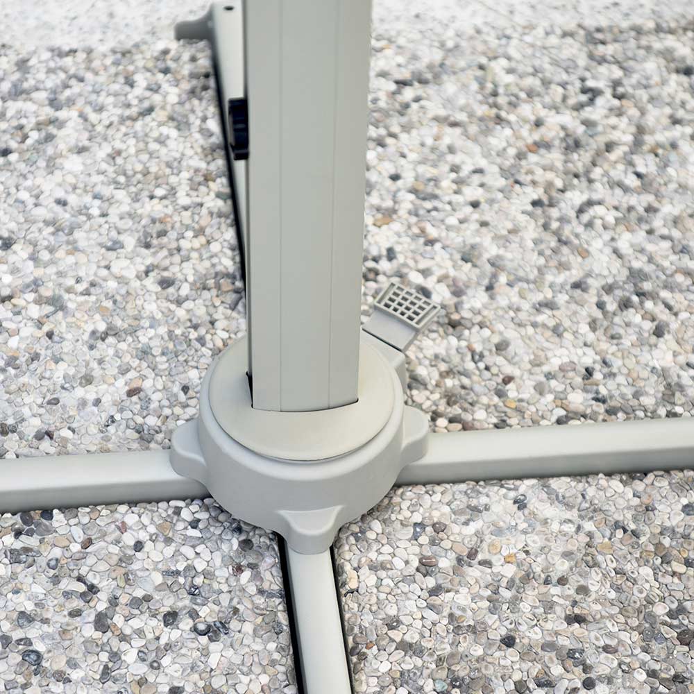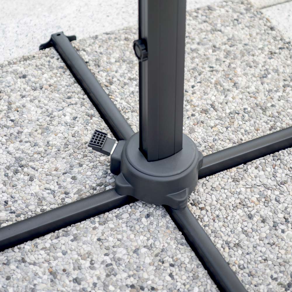 Questo ombrellone laterale unisce design moderno, praticità e resistenza, offrendo una copertura elegante per qualsiasi spazio esterno. La struttura in alluminio con palo da 77 x 53 mm e 8 bacchette da 14 x 24 mm garantisce stabilità e robustezza, mantenendo un’estetica pulita e contemporanea.