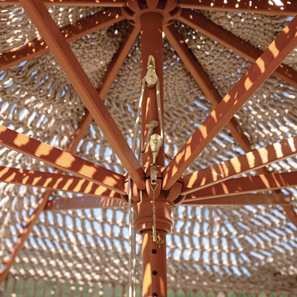 Questo ombrellone combina stile naturale e fascino artigianale, diventando il protagonista ideale di spiagge, piscine o terrazze dal gusto mediterraneo. Il bastone in legno Ø 48/8 mm regala calore e autenticità, mentre le bacchette da 17 x 35 mm assicurano solidità e stabilità nel tempo.