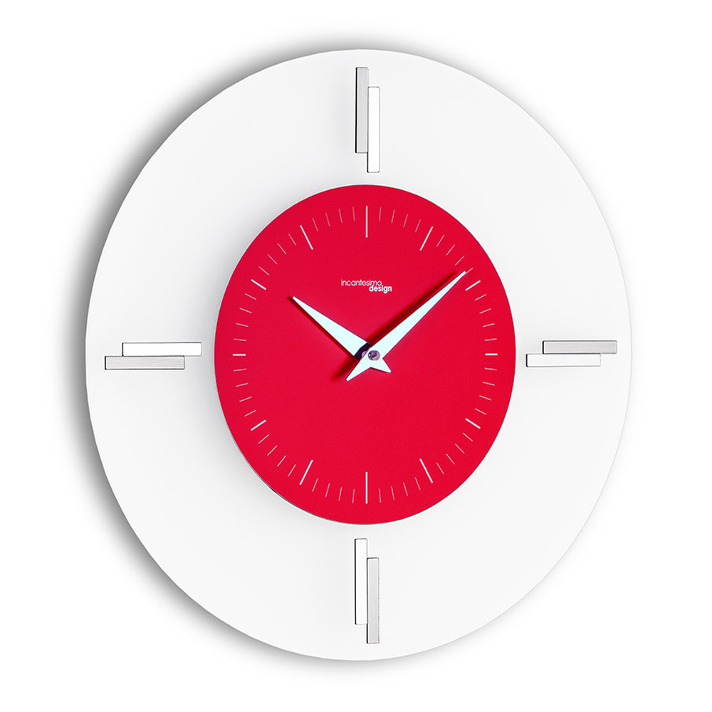 Orologio da parete rotondo in metacrilato e alluminio realizzato in Italia.
