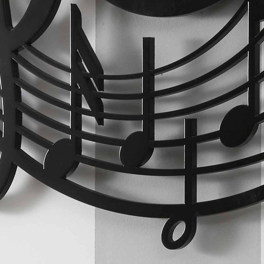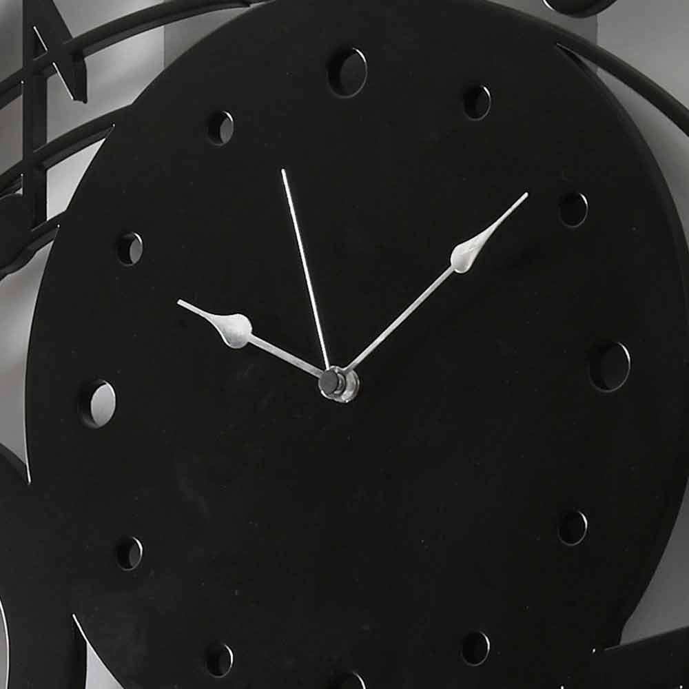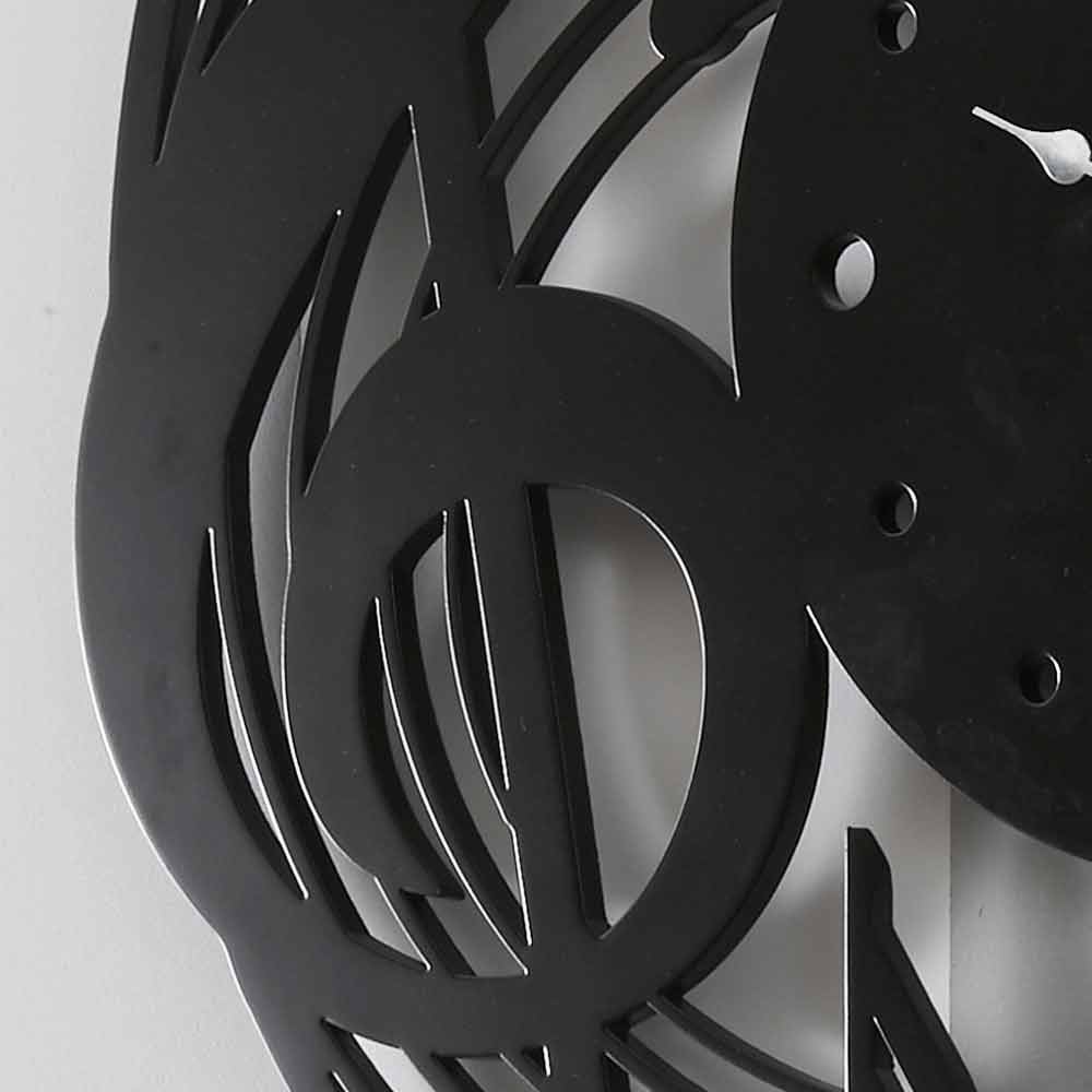 Orologio grande da parete, design rotondo e moderno con note musicali in legno nero e made in Italy.