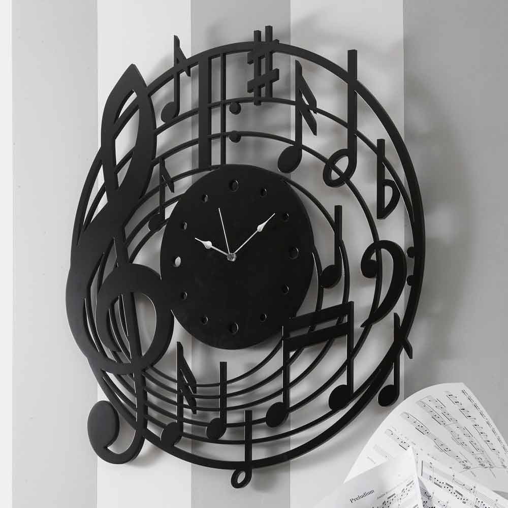 orologio rotondo da muro di grandi dimensioni raffigurante note musicali.