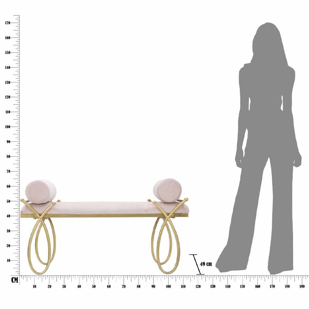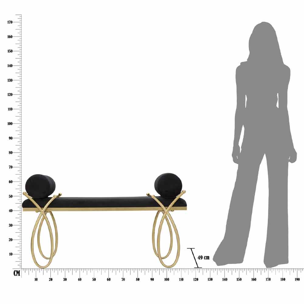 Panca rettangolare 112,5X49X53 cm di design moderno in ferro, MDF e tessuto.