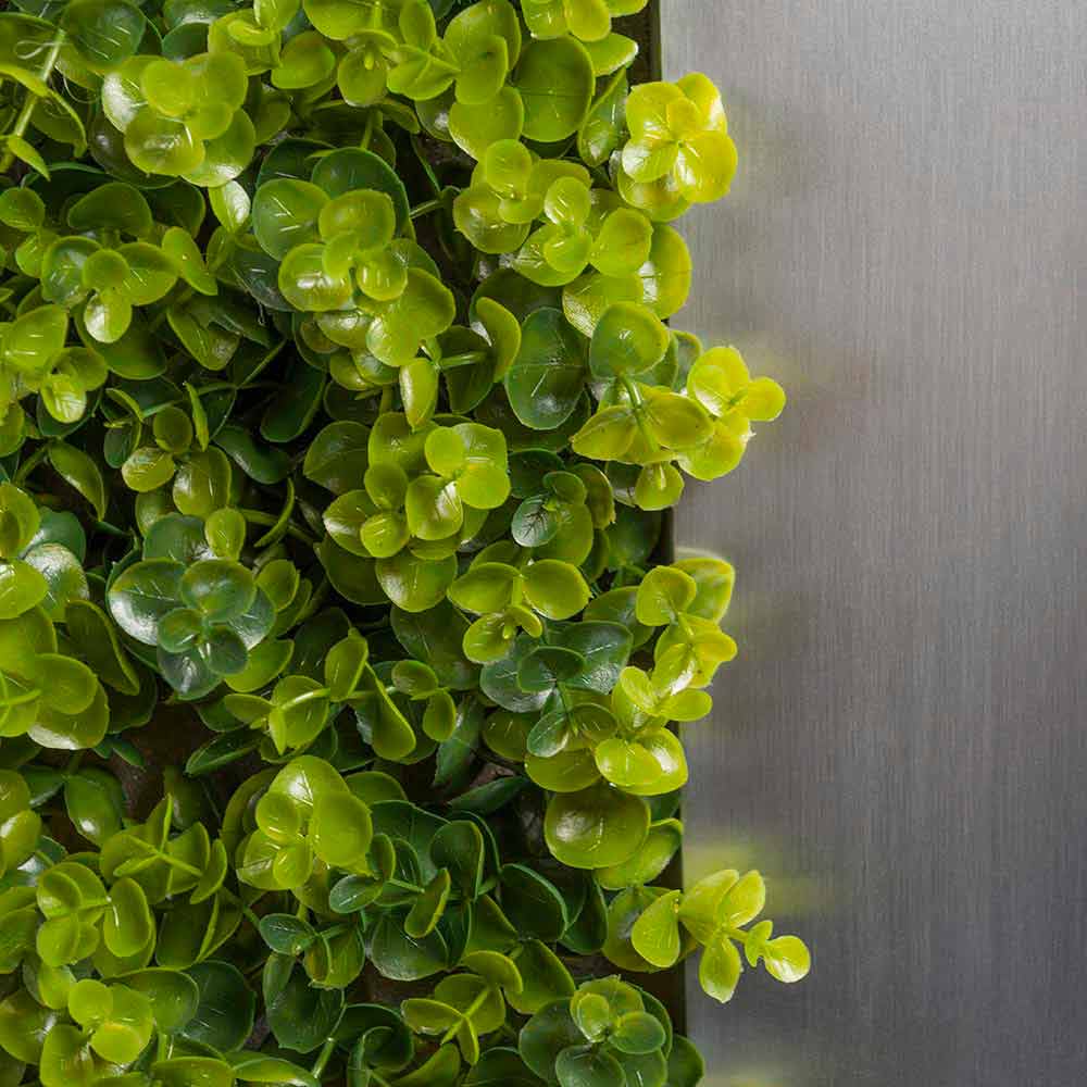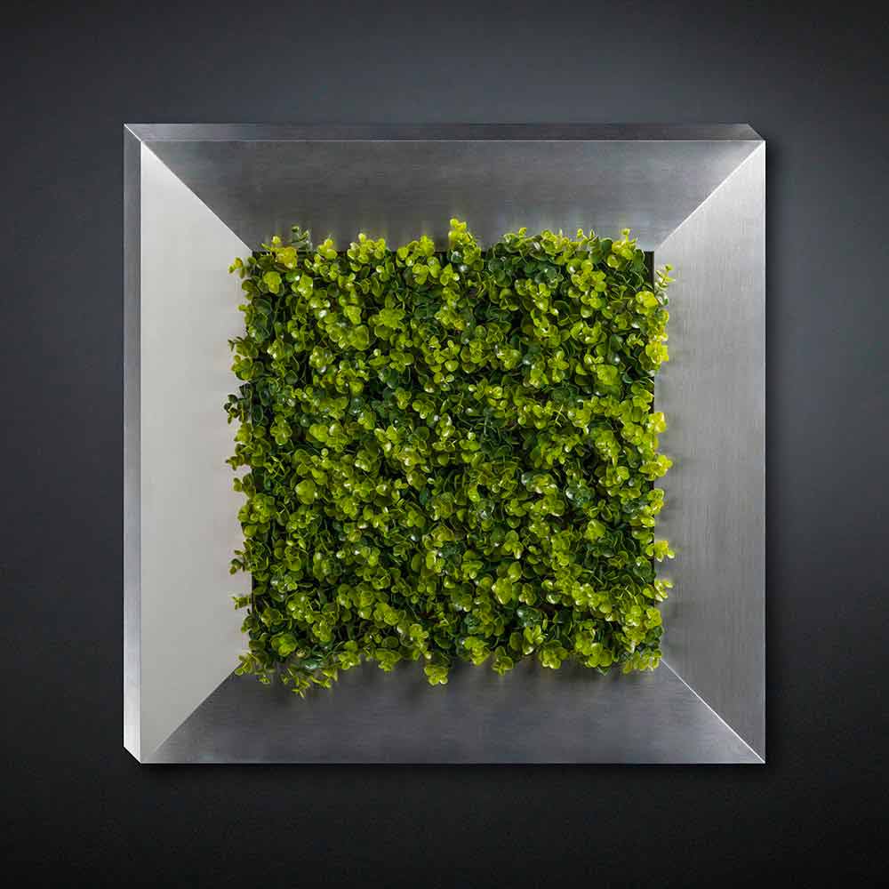 Pannello decorativo da parete realizzato in Italia con struttura in metallo cromato e inserti in foglie di eucalipto artificiali. Un'idea di arredamento che nasce dall'inusuale incontro tra le bellezze della natura e un design moderno sottolineando il fascino di entrambi i mondi in maniera esclusiva. Ciò che nasce è un complemento decorativo dall'anima sofisticata che sa arredare e riempire qualsiasi ambiente domestico o contract dallo stile contemporaneo attraverso la sua estrema versatilità e il suo minimalismo raffinato. Ideale per donare un senso di tridimensionalità alle pareti della propria casa, questo pannello ricopre un ruolo fondamentale catturando ogni attenzione grazie alla sua anima originale e creativa che porta la mente in un paesaggio verde donando pace e tranquillità.
