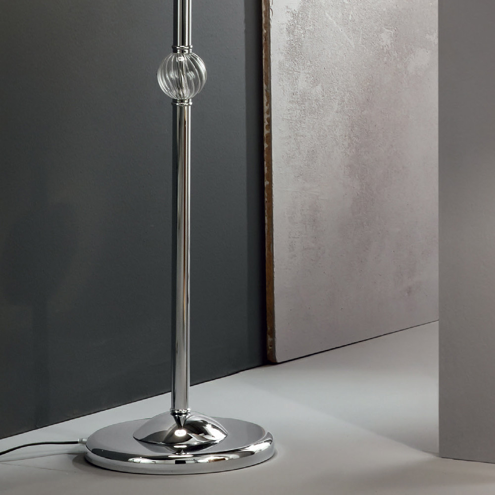 Questa piantana dallo stile classico è realizzata con una base di forma rotonda ed una parte della struttura realizzate in metallo cromato.