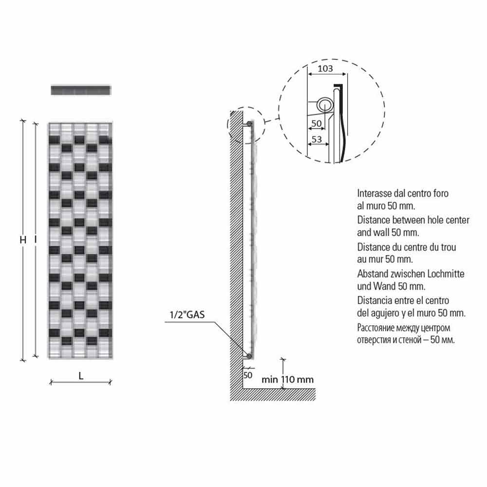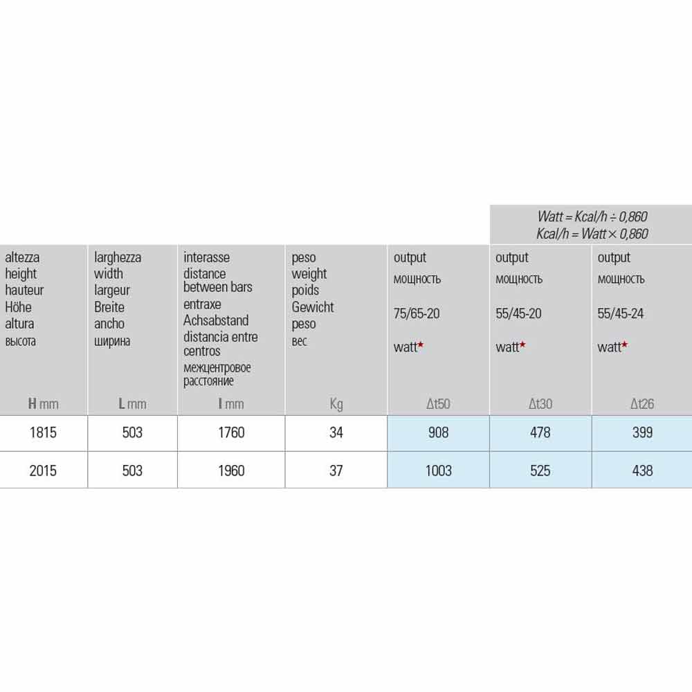 - H 1815 x L 503 x Inter.1760 mm x Resa w(Δt50*) 908; Resa w(Δt30*) 478; Resa w(Δt26*) 399