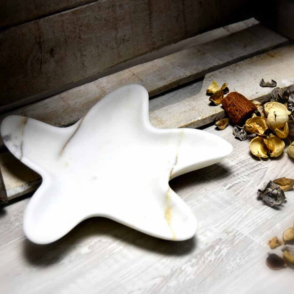 Piattino a forma di stella marina realizzato in marmo satinato di design Made in Italy.