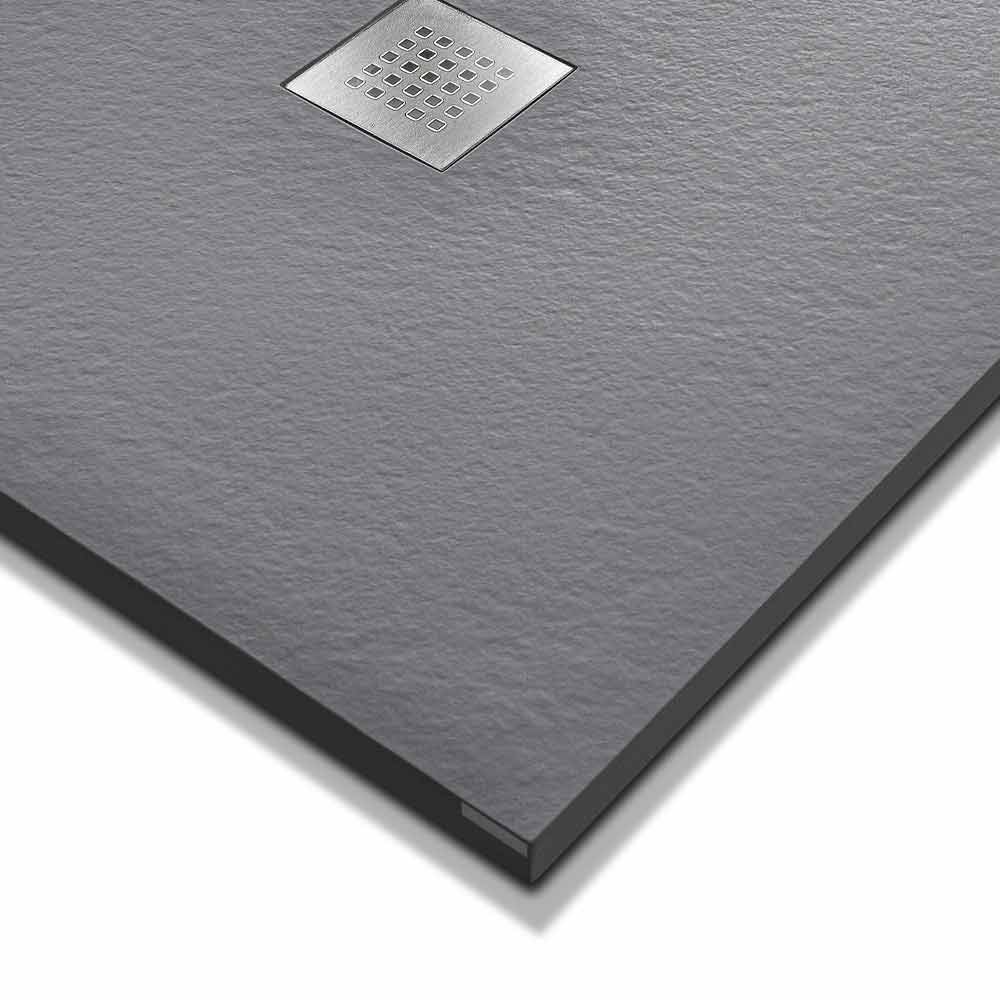 Piatto doccia moderno 160x80 in resina finitura effetto pietra e acciaio.