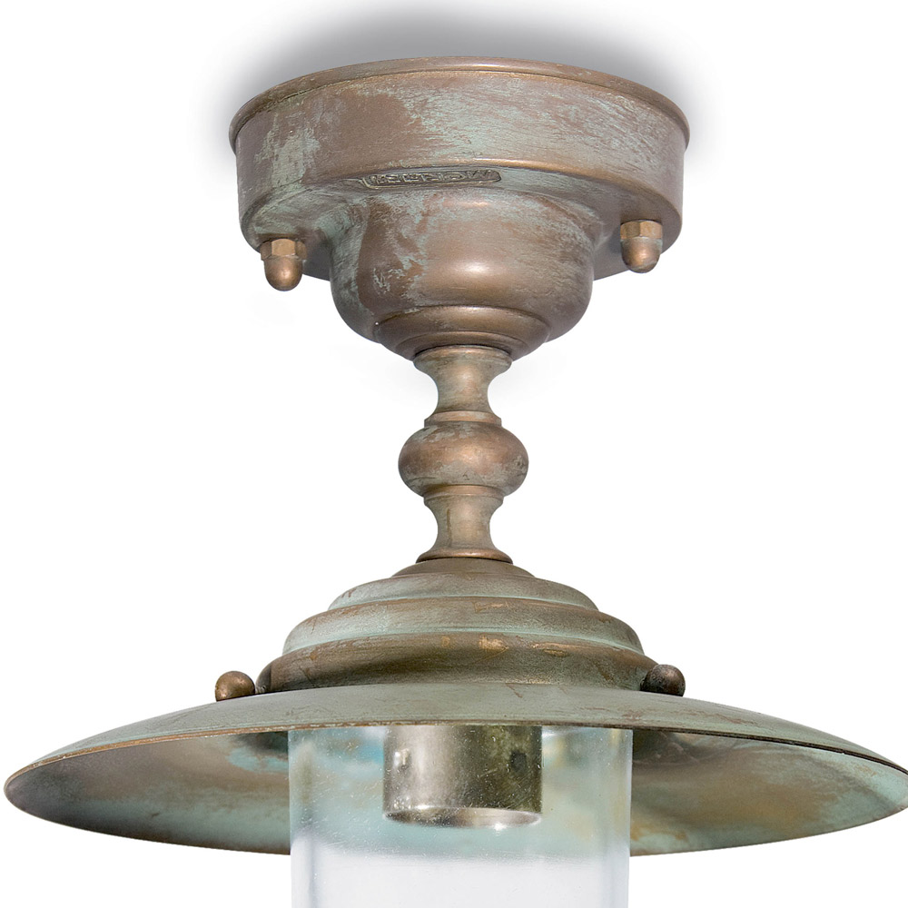 Dal carattere autentico e senza tempo, questa plafoniera da esterno richiama il fascino delle lanterne tradizionali reinterpretate in chiave elegante. La struttura in ottone, lavorata artigianalmente, si distingue per le sue finiture anticate che esaltano la matericità del metallo e donano un aspetto vissuto e raffinato.