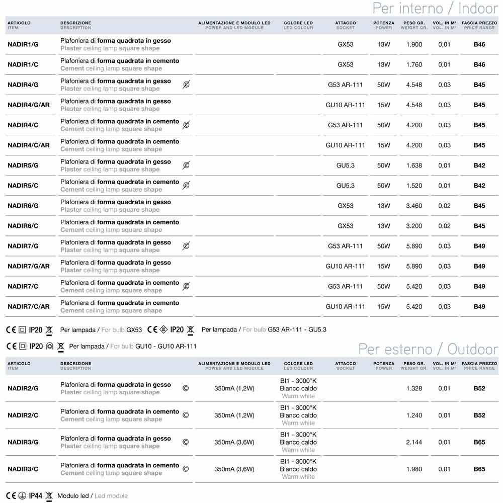 Plafoniera di forma quadrata per esterno modello Nadir 2 di Aldo Bernardi, disponibile in gesso oppure in cemento