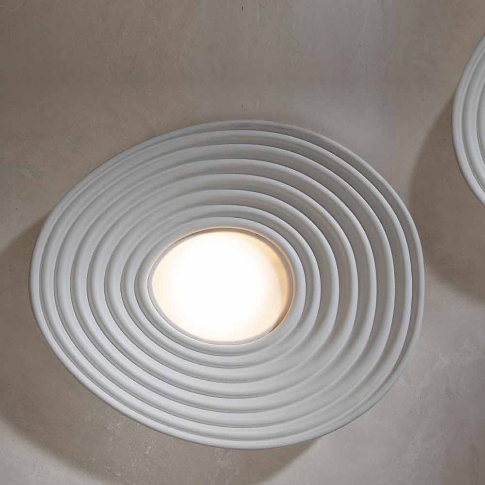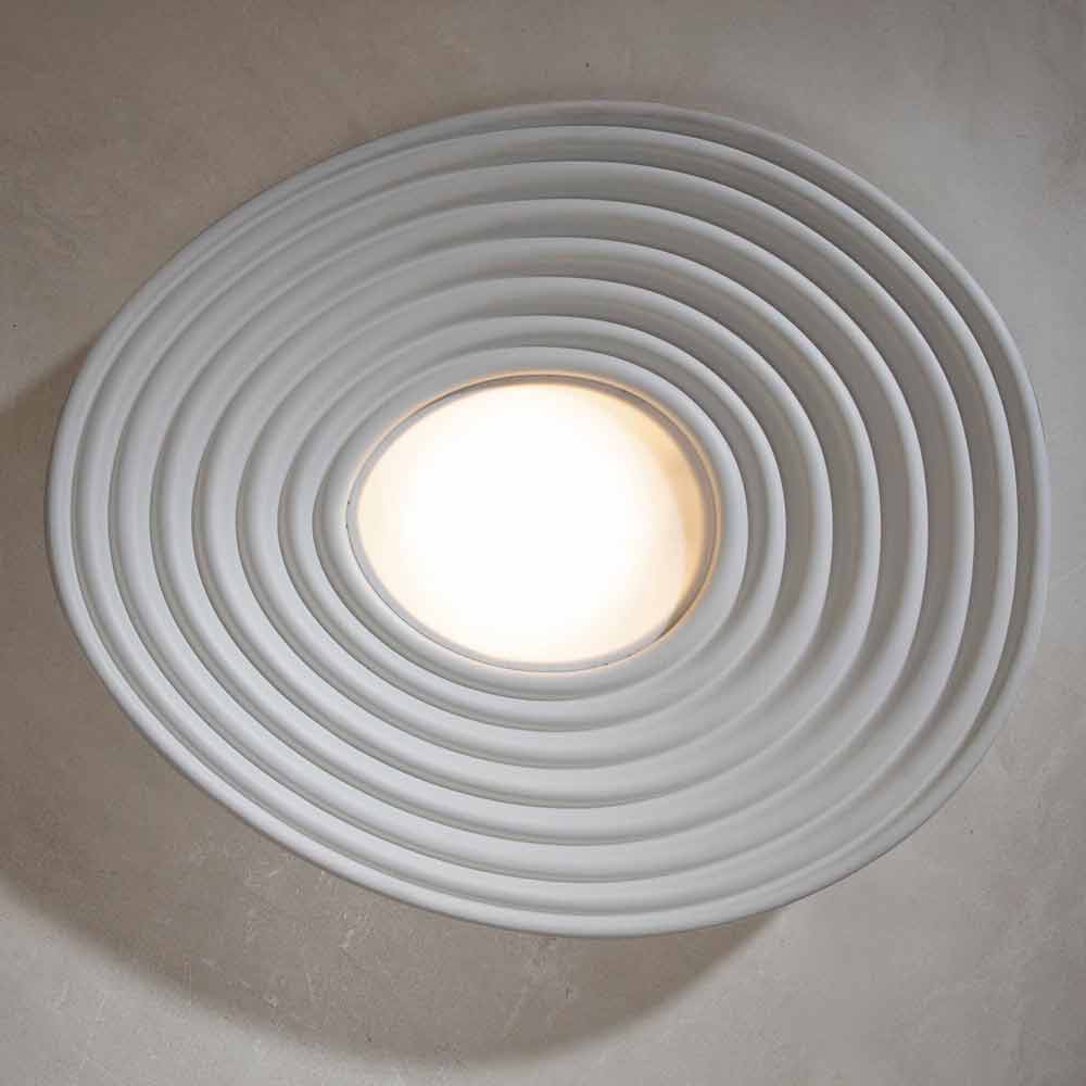 La lampada è realizzata in gesso bianco opaco e diffusore in pmma bianco per un design integralmente italiano che, attraverso la sperimentazione anticonvenzionale e la continua ricerca tra tradizione e modernità, è in grado di stupire, osare ed emozionare, concedendo di esprimere le proprie emozioni attraverso un originale e personale uso decorativo della luce.