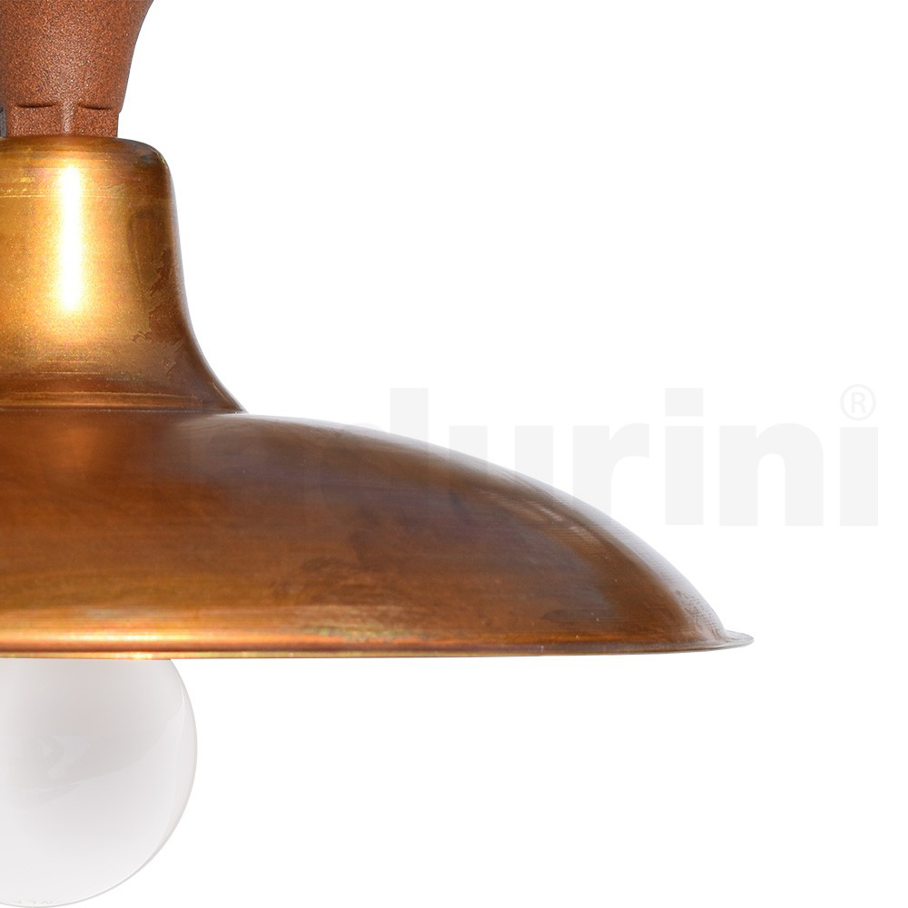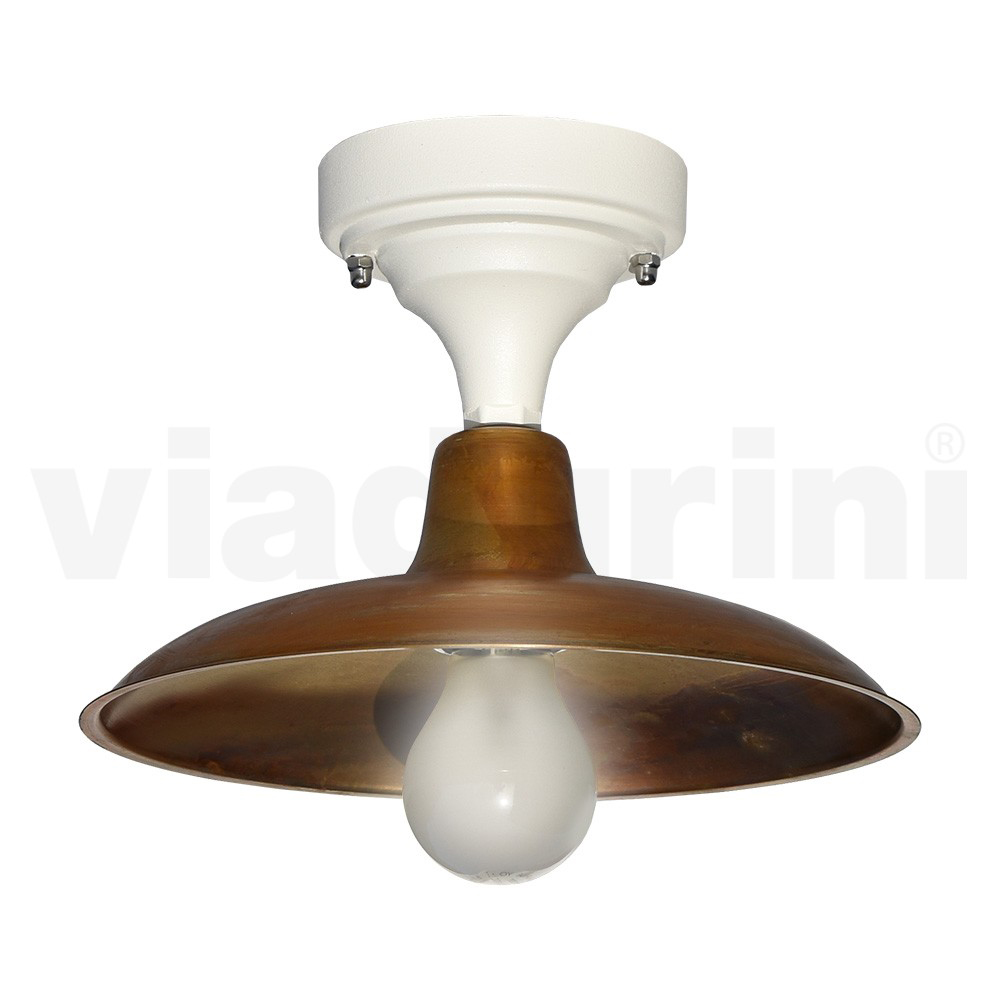 Plafoniera vintage da esterno in alluminio con diffusore in ottone Made in Italy.