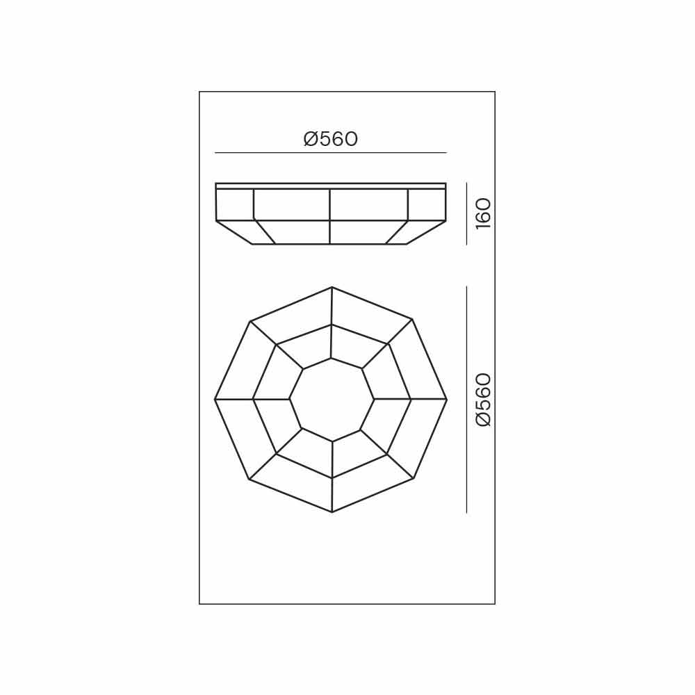 plafoniera da interno trae ispirazione dalle forme geometriche e pure dell'antica tradizione.
