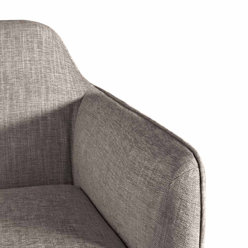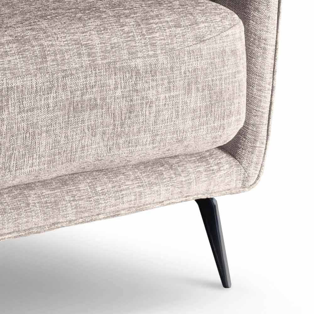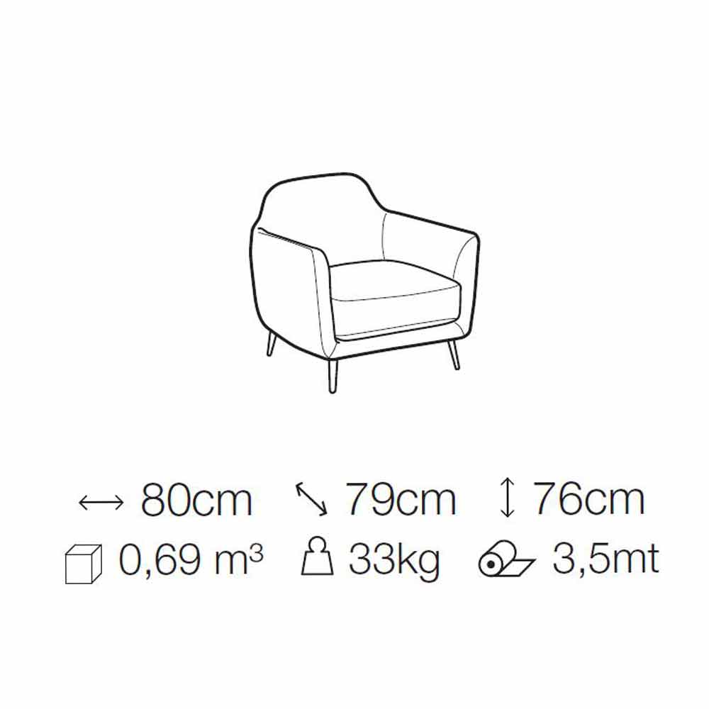 Moderna poltrona da salotto con struttura interna in pannelli di legno multistrato successivamente imbottita e rivestita in tessuto completamente sfoderabile e piedini in metallo finitura cromo nero.
