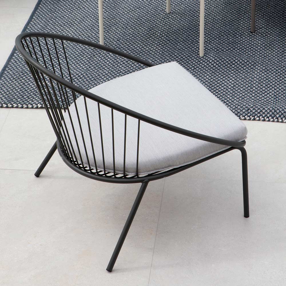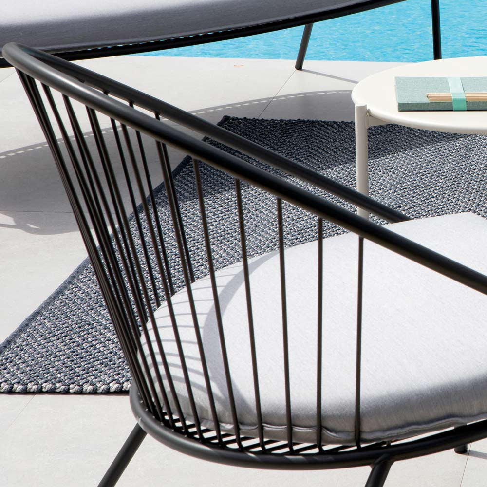 resistenza della finitura alla corrosione di agenti atmosferici come acidità delle piogge o salsedine, rendendo la poltrona un elemento perfetto per arredare qualsiasi spazio aperto.