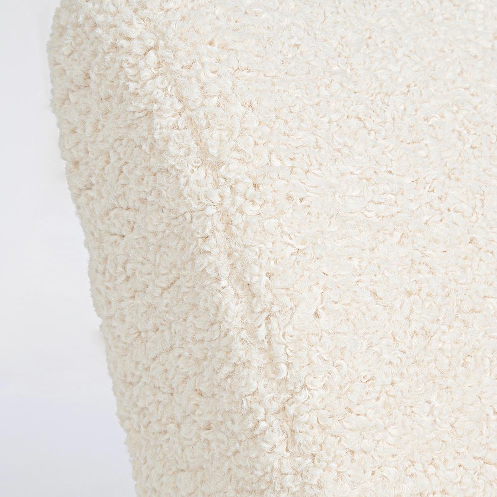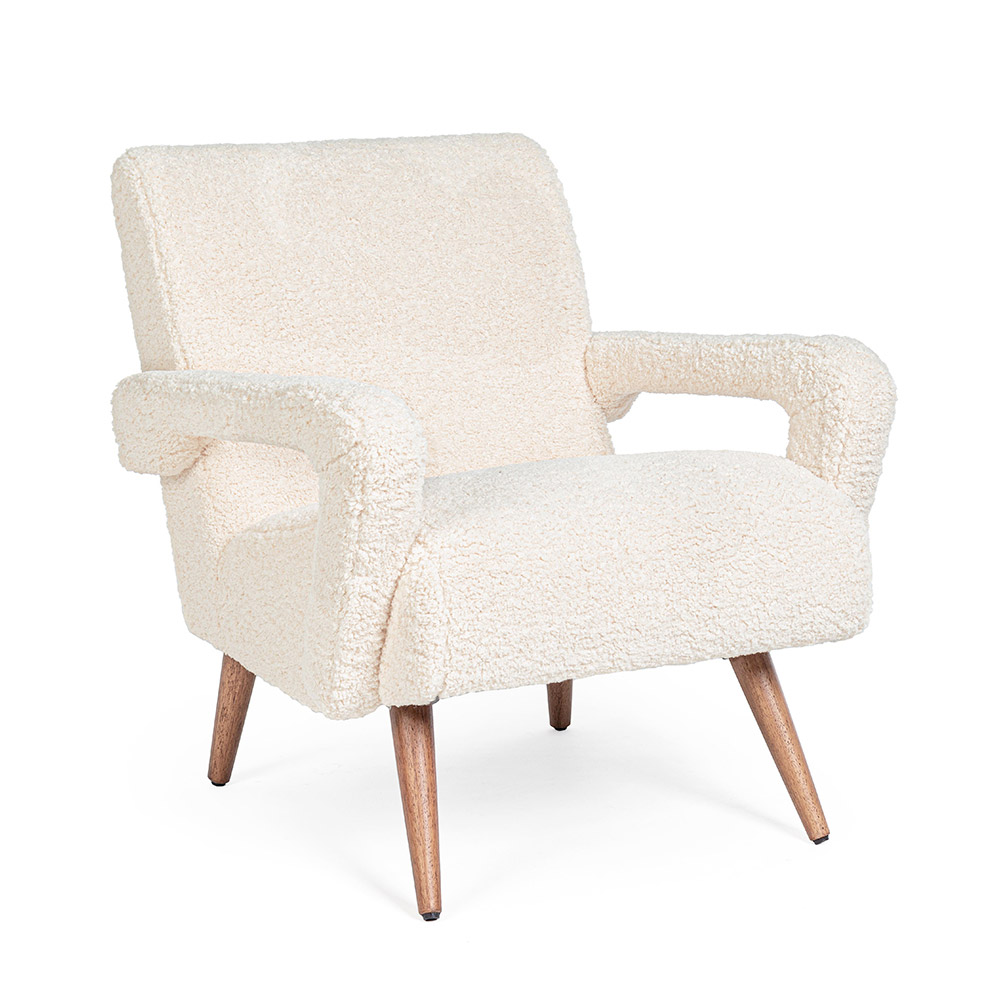 Poltrona con braccioli design in rubberwood e poliestere effetto lana 2 finiture.