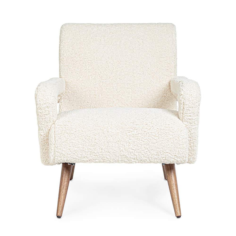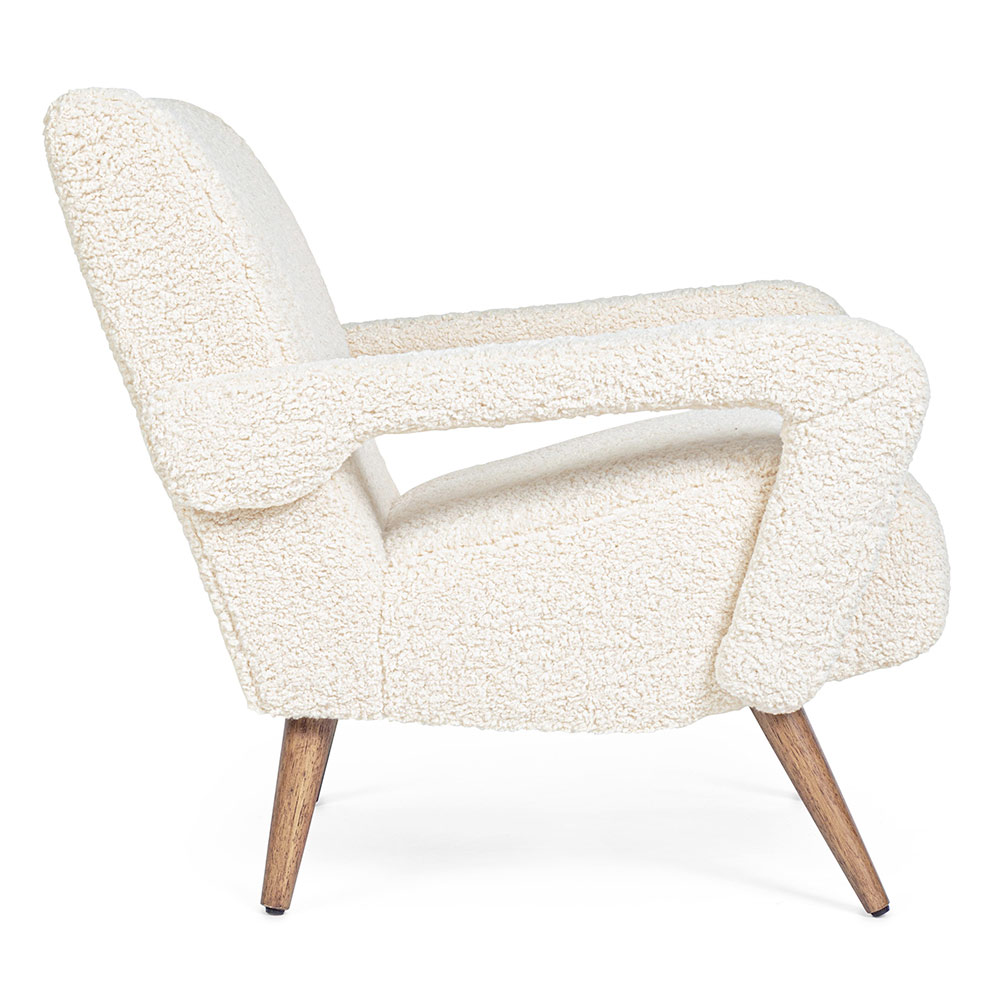 Poltrona con Braccioli in Rubberwood e Seduta Effetto Lana - Patrizia