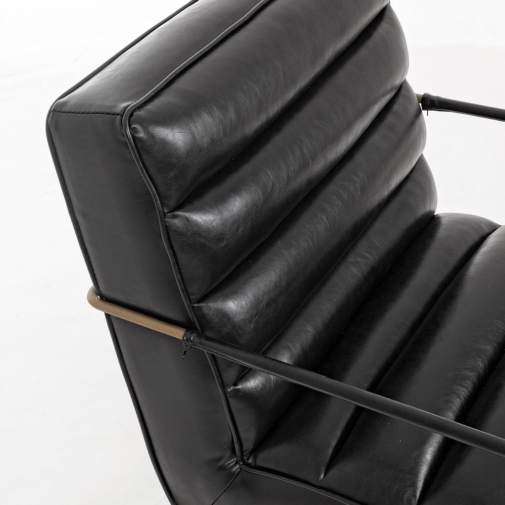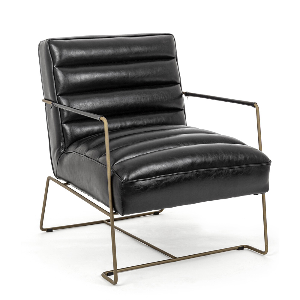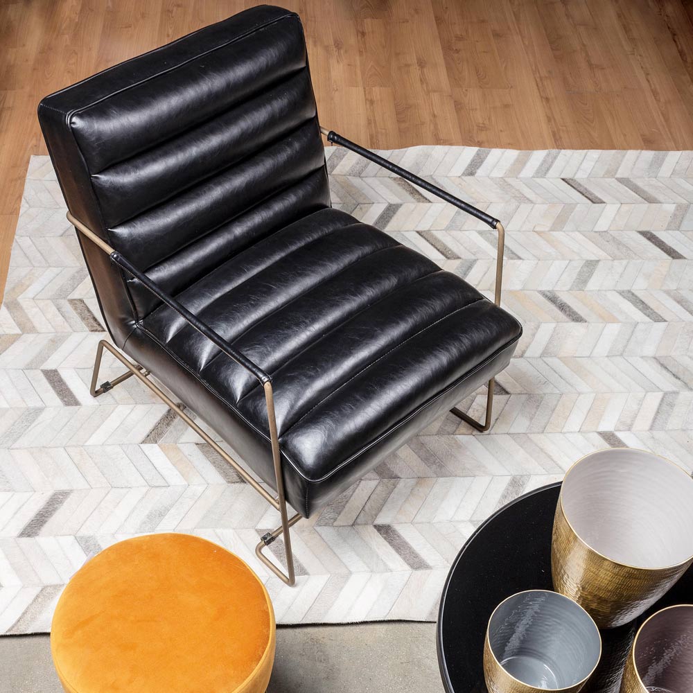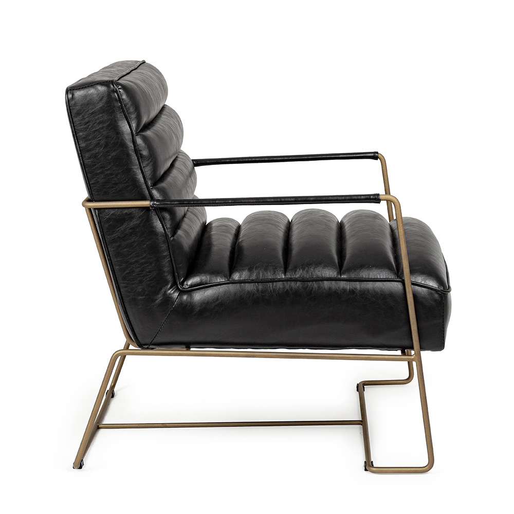 Poltrona design classico in acciaio e seduta in ecopelle nera o marrone.