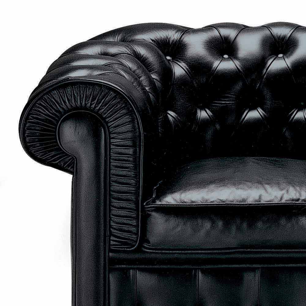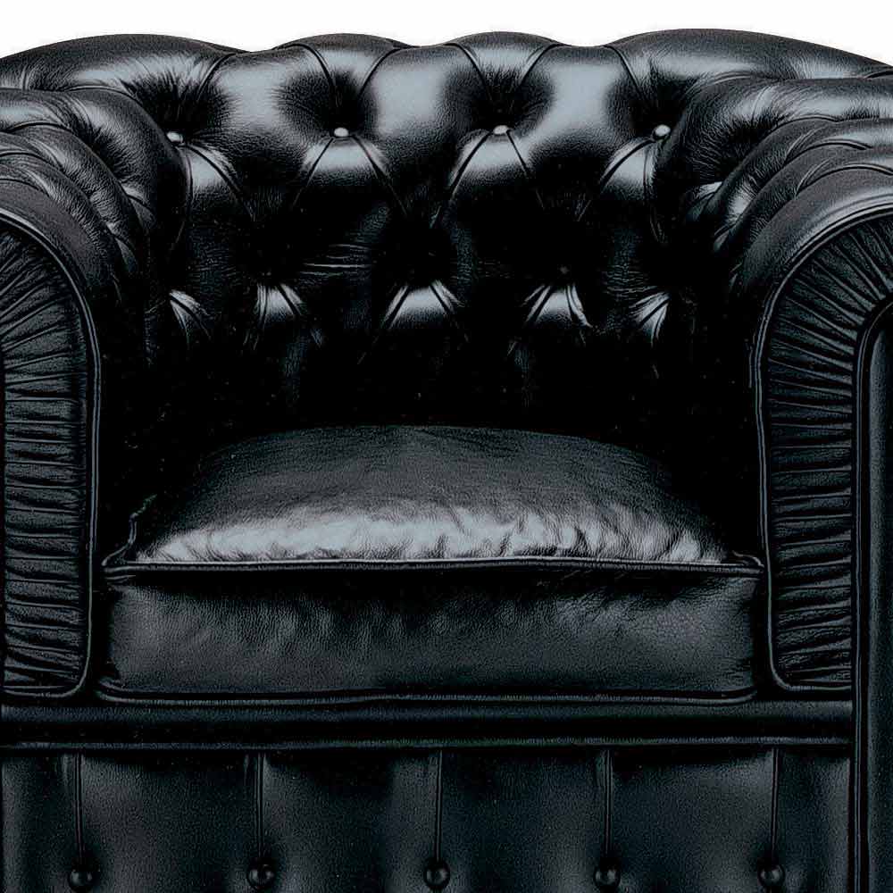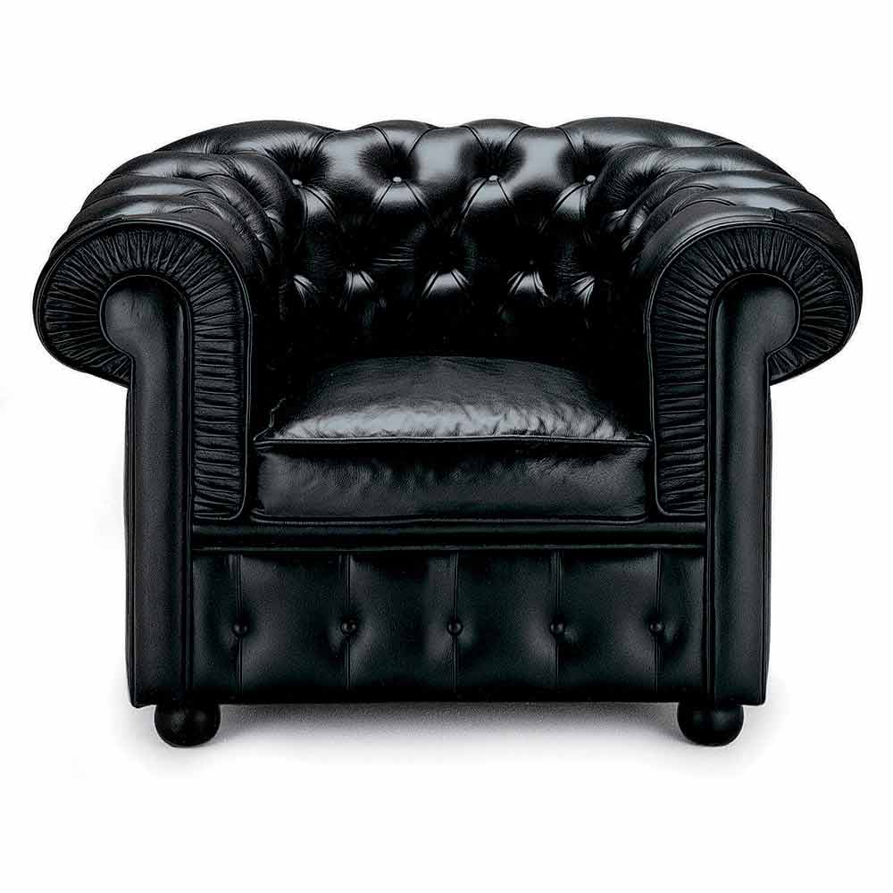Poltrona classica in pelle con piedini in legno realizzata in Italia.
