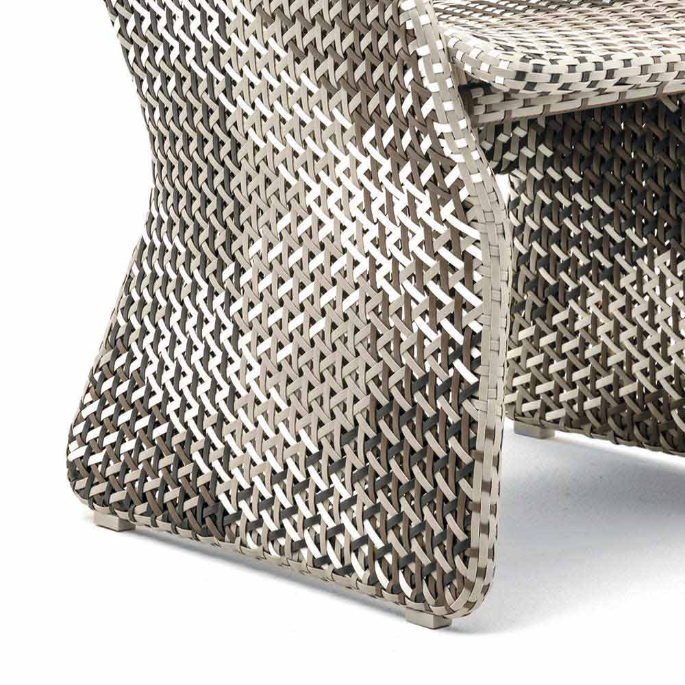 Poltrona da giardino di lusso moderna in fibra sintetica intrecciata con telaio in alluminio verniciato.