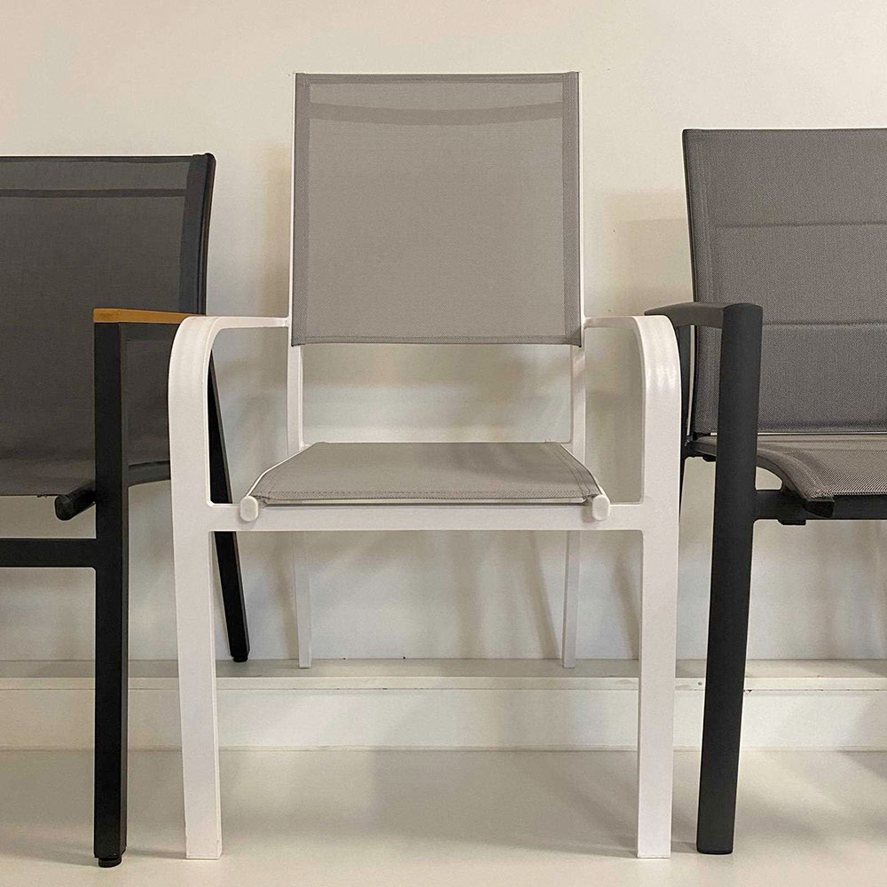 La nostra poltrona in alluminio incarna la fusione perfetta tra eleganza moderna e comfort pratico. Progettata con una struttura in alluminio verniciato a polvere, questa sedia offre durabilità eccezionale e resistenza agli agenti atmosferici, ideale per l'uso esterno. Il tessuto in textilene non solo aggiunge un tocco di classe ma è anche facile da pulire e mantiene la sedia fresca anche sotto il sole.