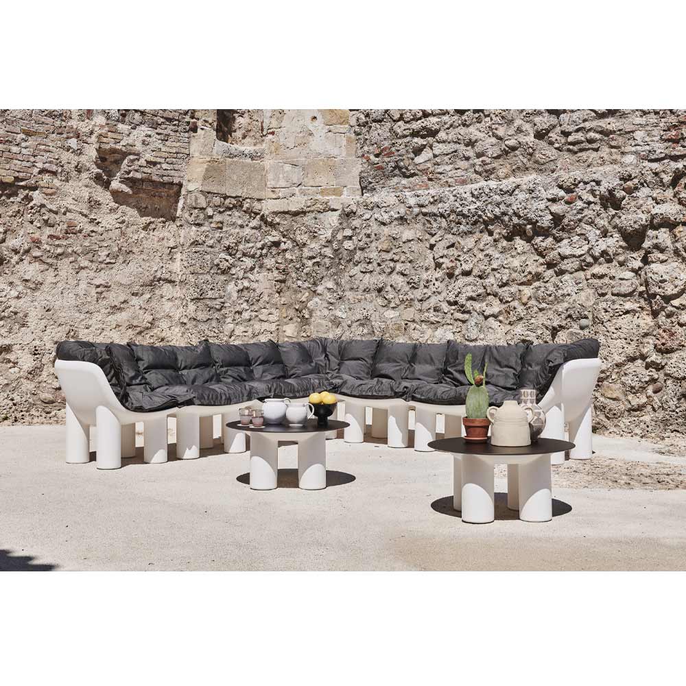 carattere deciso ma al tempo stesso fresca e ricercata. Il suo design la rende perfetta per creare pratiche e comode composizioni per esterno all'insegna del comfort. L'elemento chiave che ne caratterizza l'interno design sono le gambe che donano