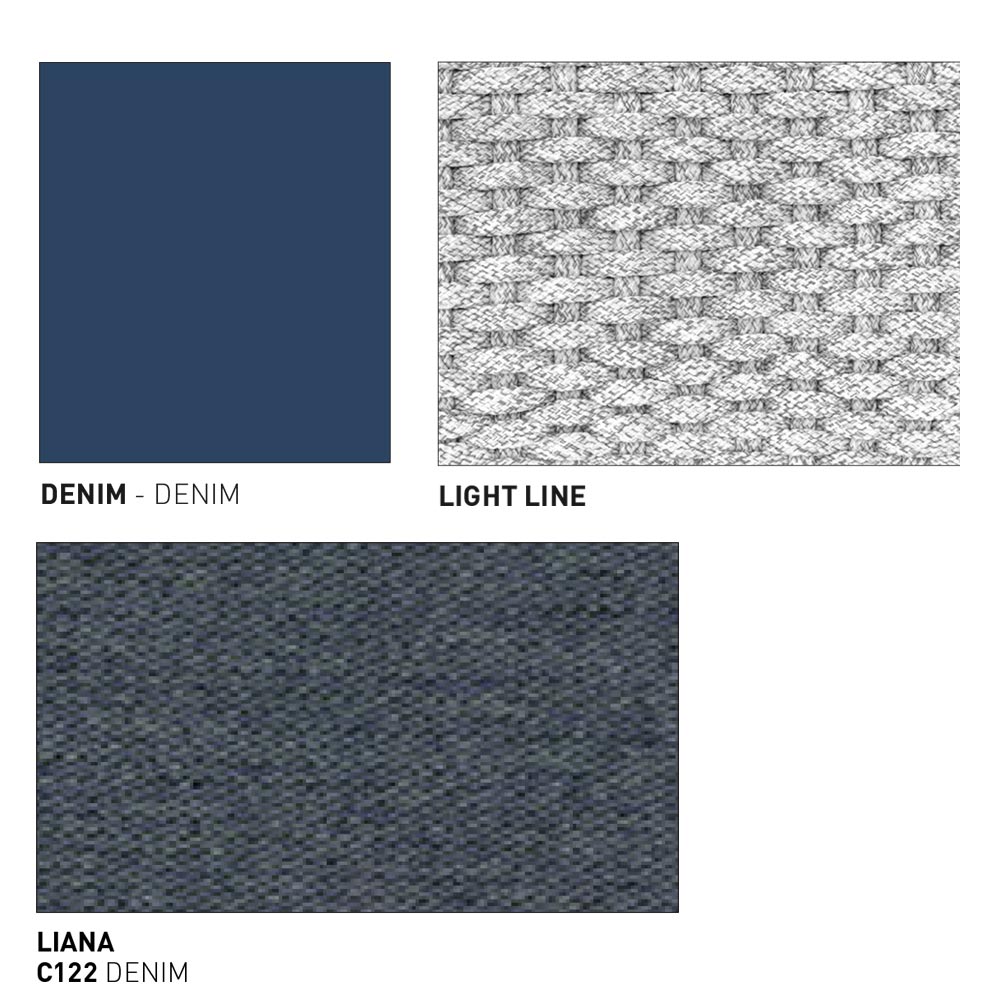 - gamba denim, intreccio light line e cuscino seduta liana denim.