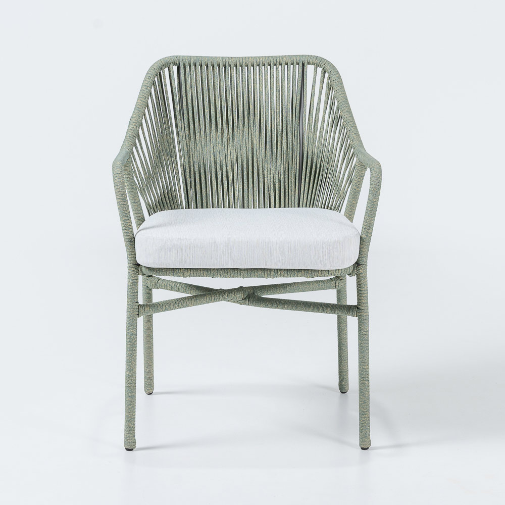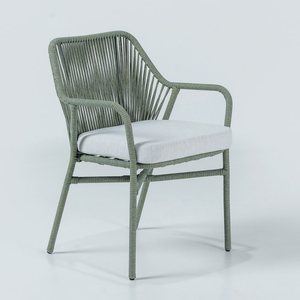 Poltroncina da giardino in alluminio, intreccio in corda e cuscino seduta