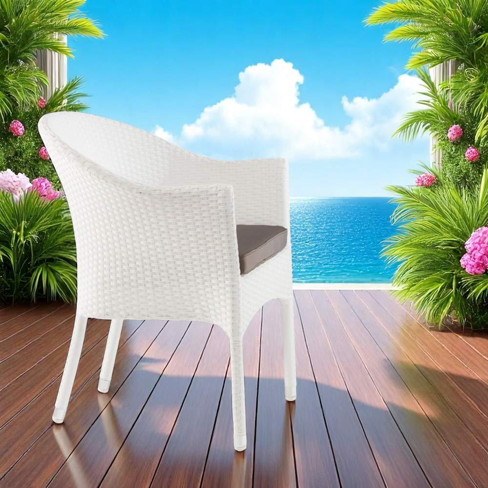 Il suo rivestimento in wicker bianco intrecciato dona un effetto visivo elegante e arioso, perfetto per chi ama uno stile naturale ma ricercato. Il design impilabile la rende estremamente funzionale e salvaspazio, ideale sia per contesti residenziali che contract, come hotel, ristoranti o locali all’aperto.