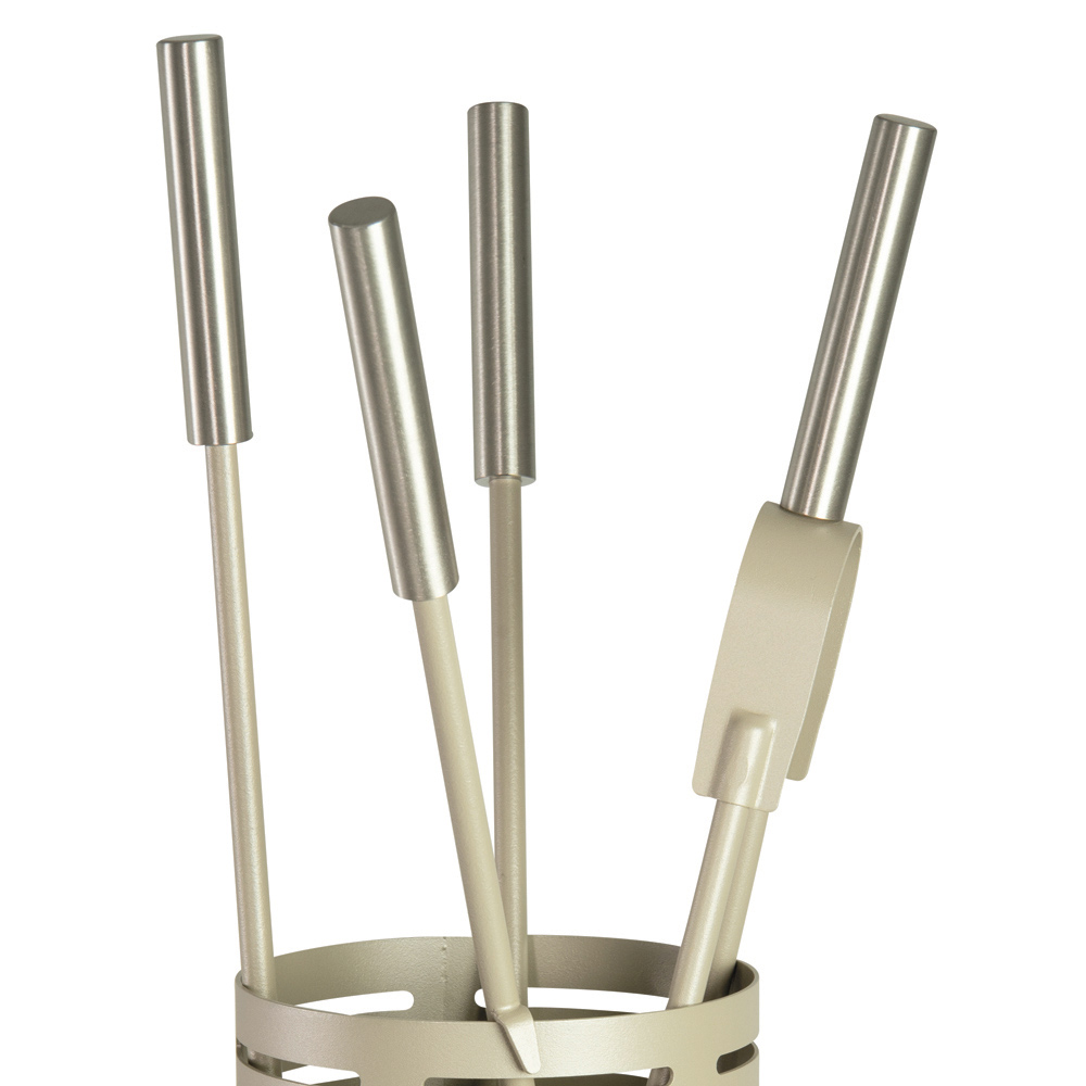 Questo porta attrezzi non solo aggiunge funzionalità al vostro spazio living ma serve anche come un punto focale di design, grazie alla sua presenza discreta e sofisticata. Con questo set, avrete sempre gli strumenti necessari a portata di mano per godervi il calore del vostro camino in maniera sicura e senza disordine.