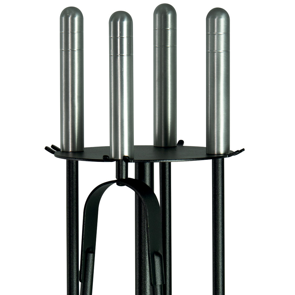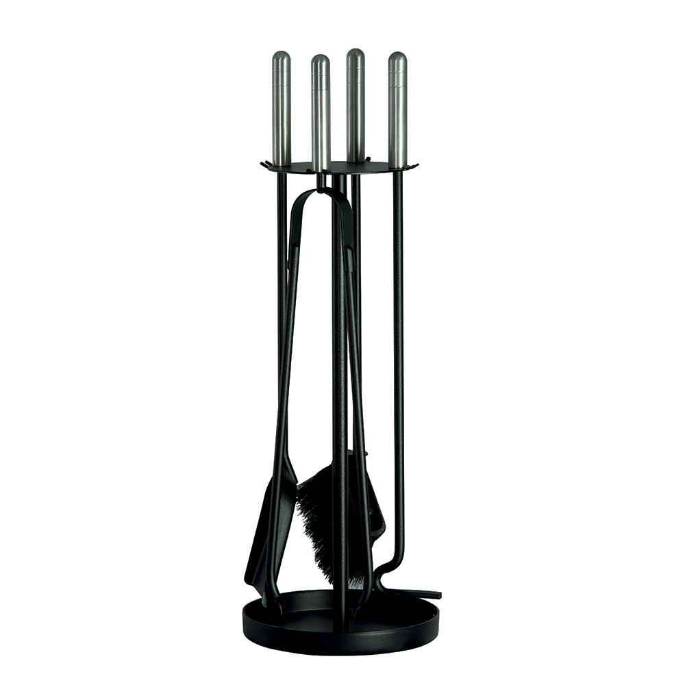 Il supporto verticale non solo occupa poco spazio, ma organizza gli accessori in maniera efficiente, tenendoli in ordine e facilmente raggiungibili. La base circolare raccoglie eventuali residui o cenere che possono cadere durante l'utilizzo degli attrezzi, mantenendo la zona intorno al camino pulita.